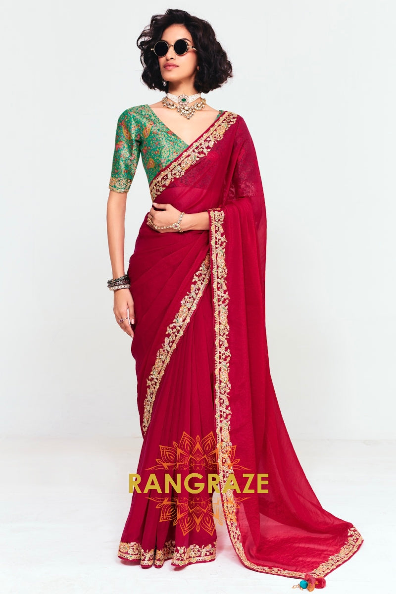 Crimson Charm Organza Saree