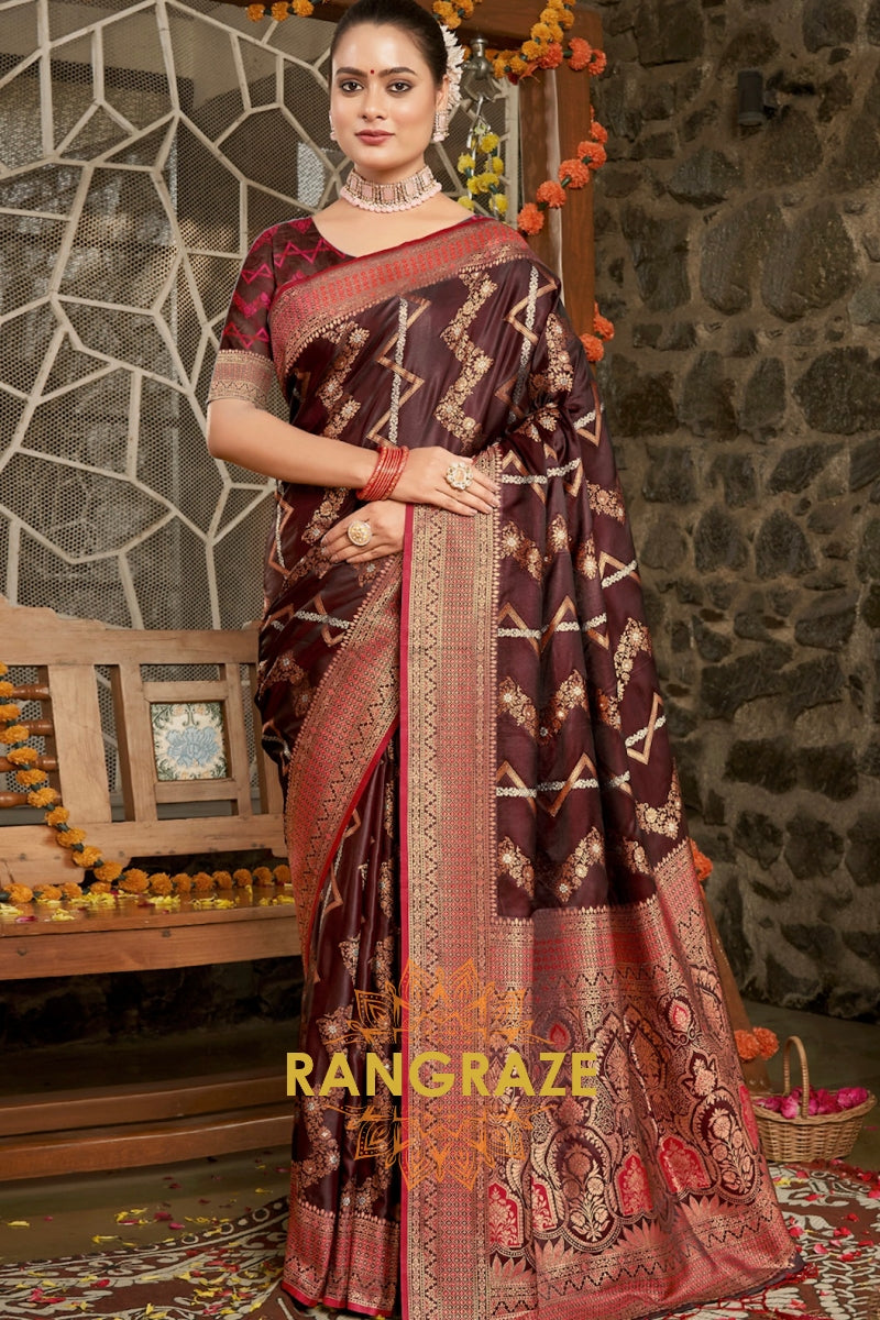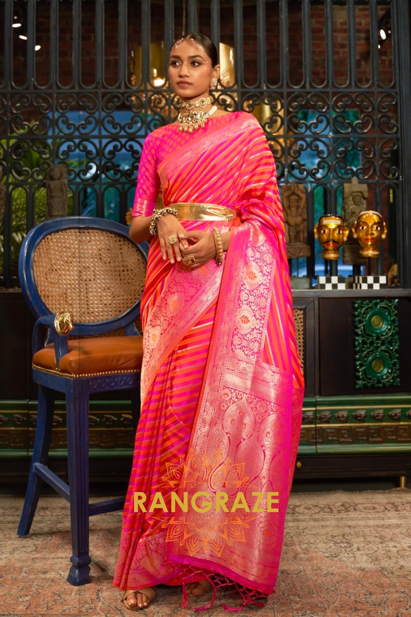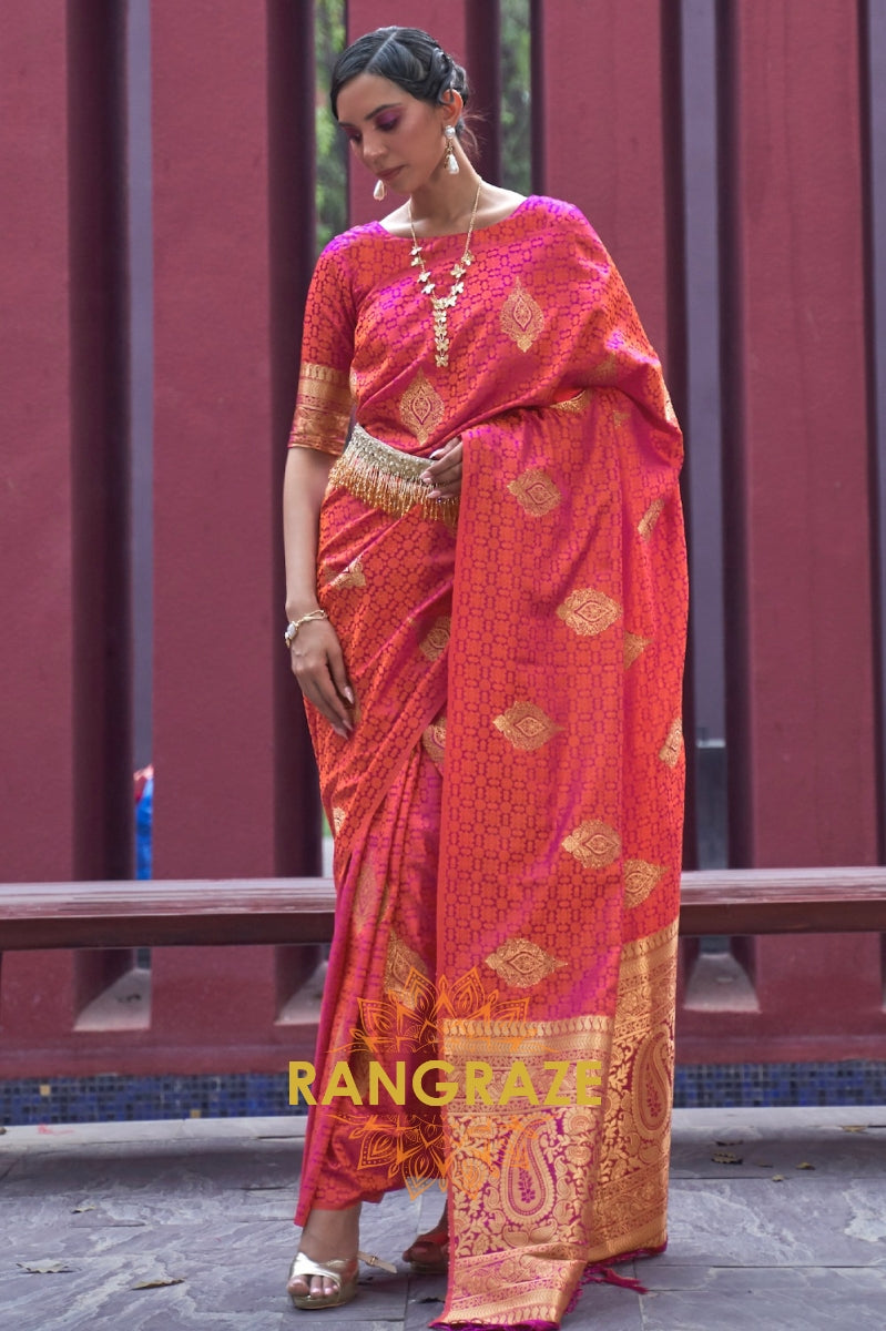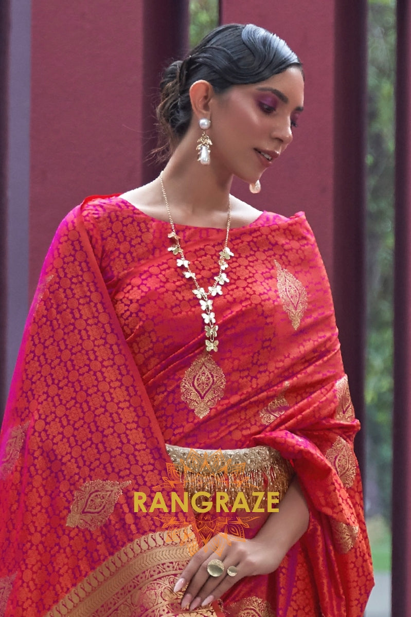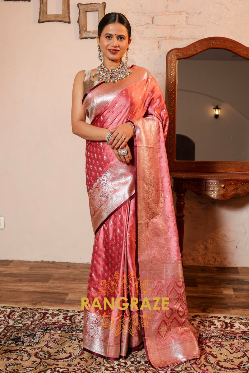 Coral Maroon Dual Tone Banarasi Satin Silk Saree
