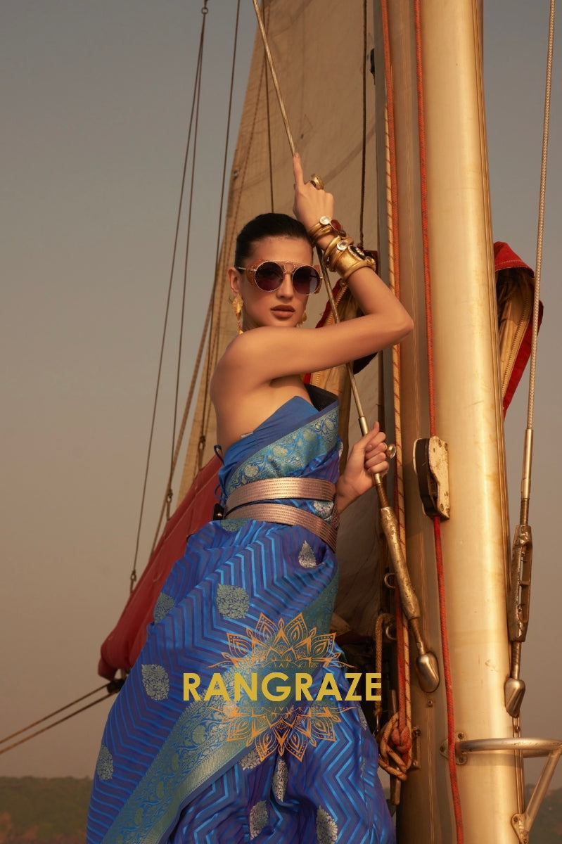 Allure Blue Woven Satin Silk Saree With Brocade Blouse