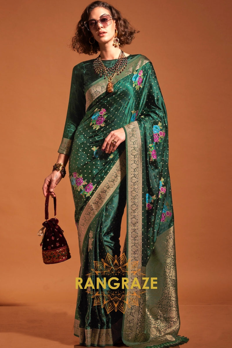 Bottle Green Woven Banarasi Satin Silk Saree