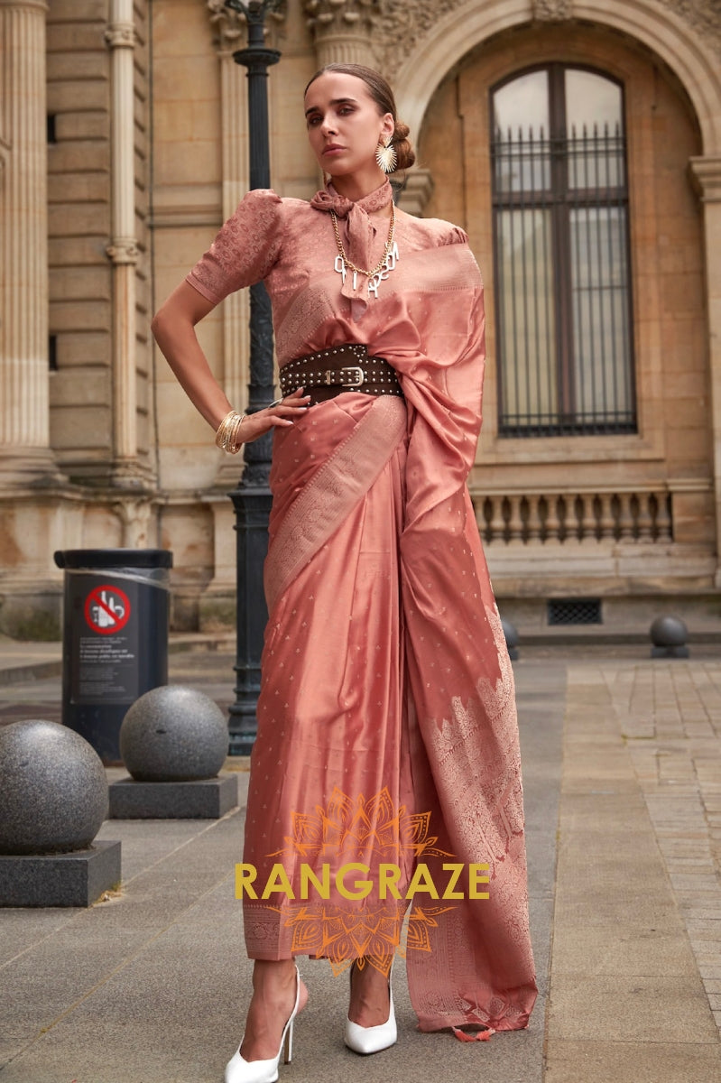 Allure Peach Woven Satin Silk Saree With Brocade Blouse