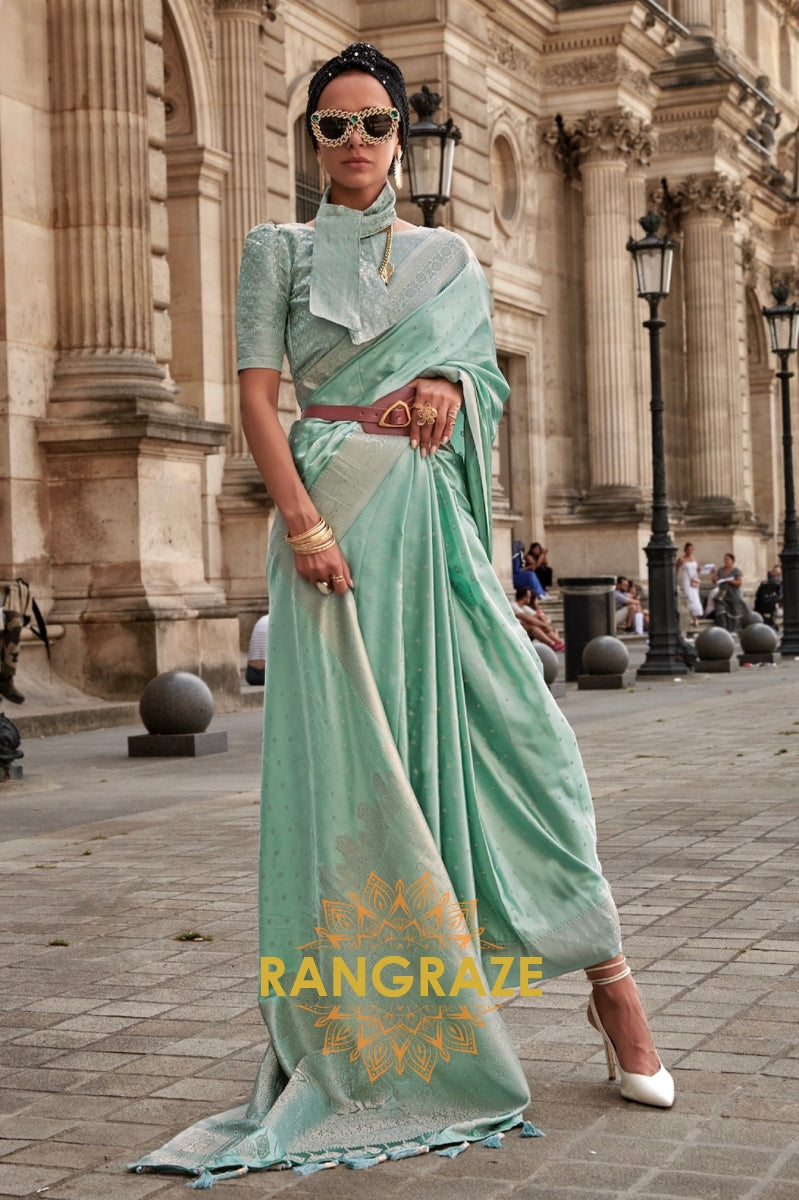 Allure Green Woven Satin Silk Saree With Brocade Blouse