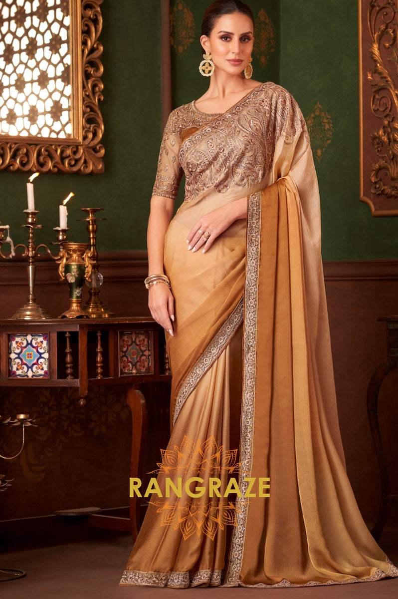 Golden Grace Satin Chiffon Saree with Embroidered Silk Blouse