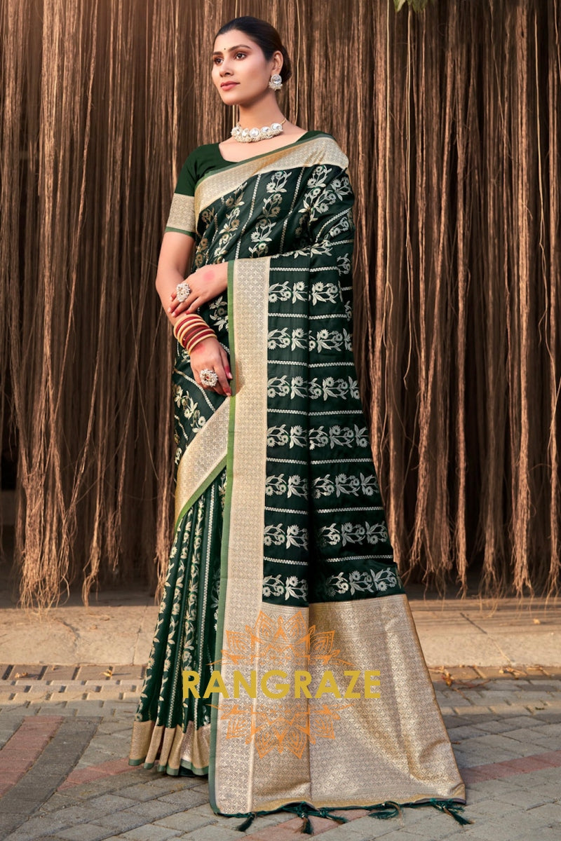 Rich Magnetic Green Color Kanjivaram Silk Saree