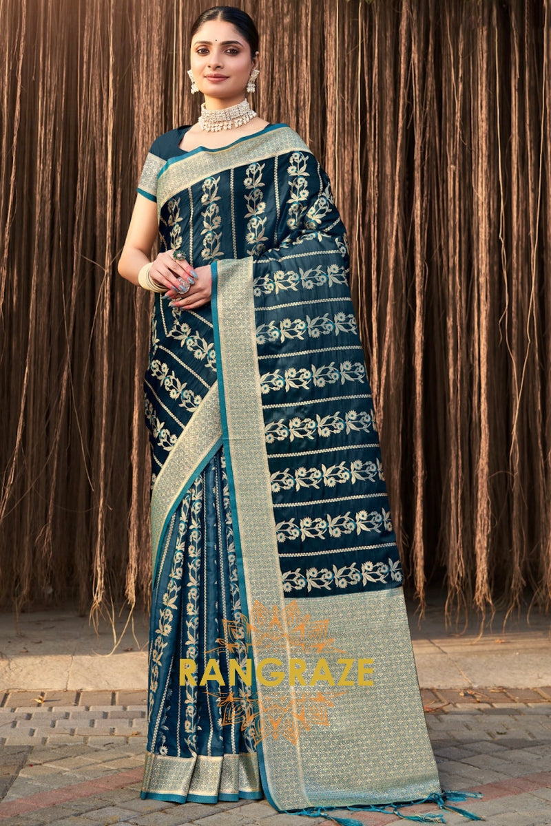 Rich Magnetic Blue Color Kanjivaram Silk Saree