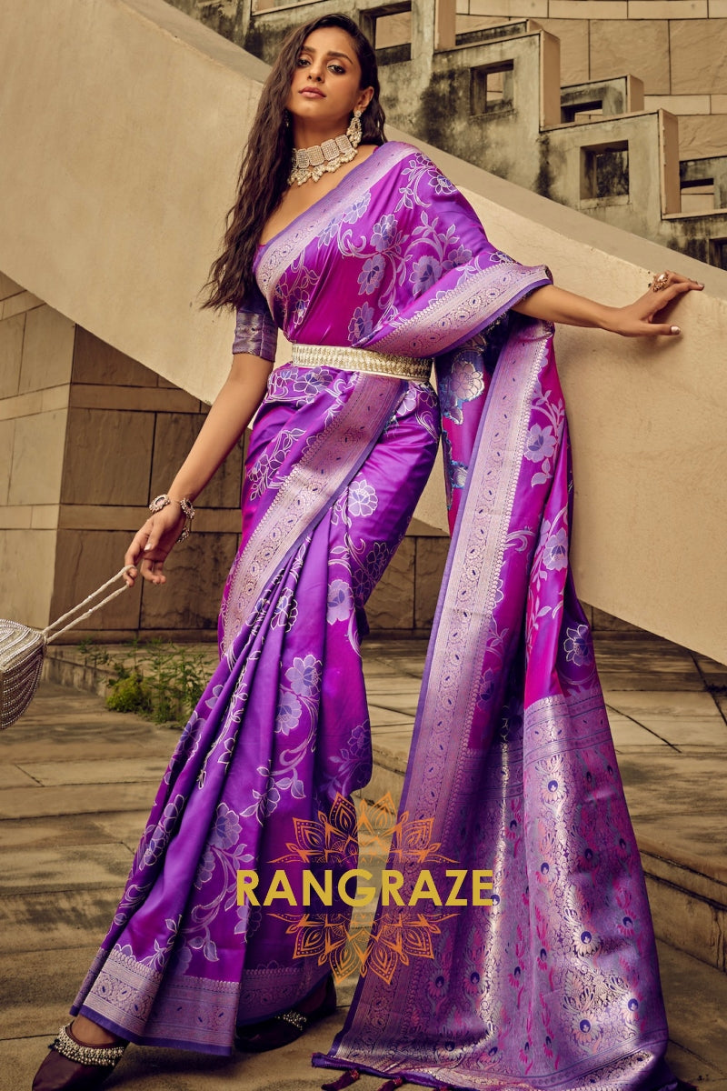 Wine Purple Woven Satin Brasoo Banarasi Silk Saree