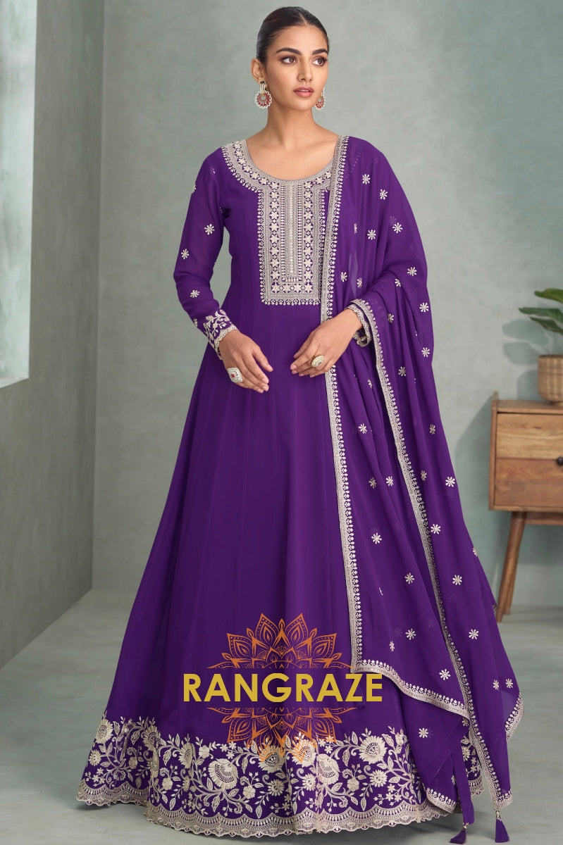 Regal Plum Georgette Embroidered Anarkali Suit Set