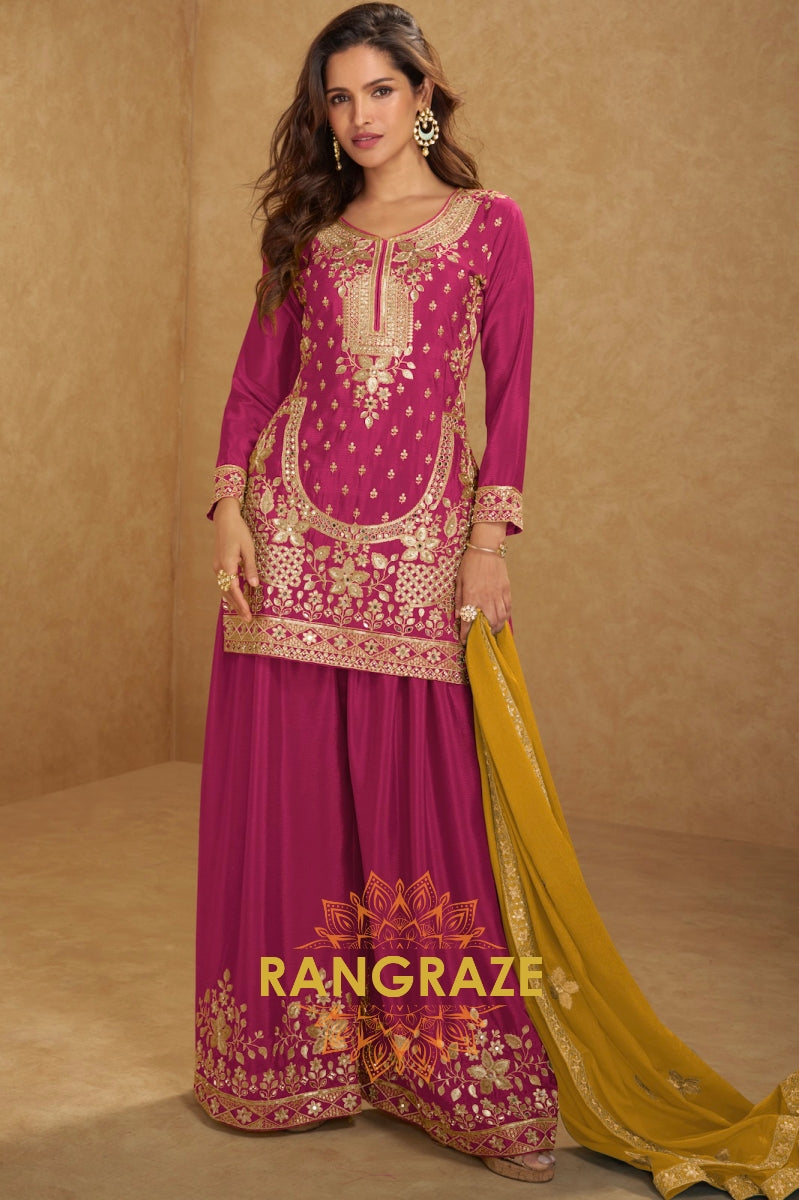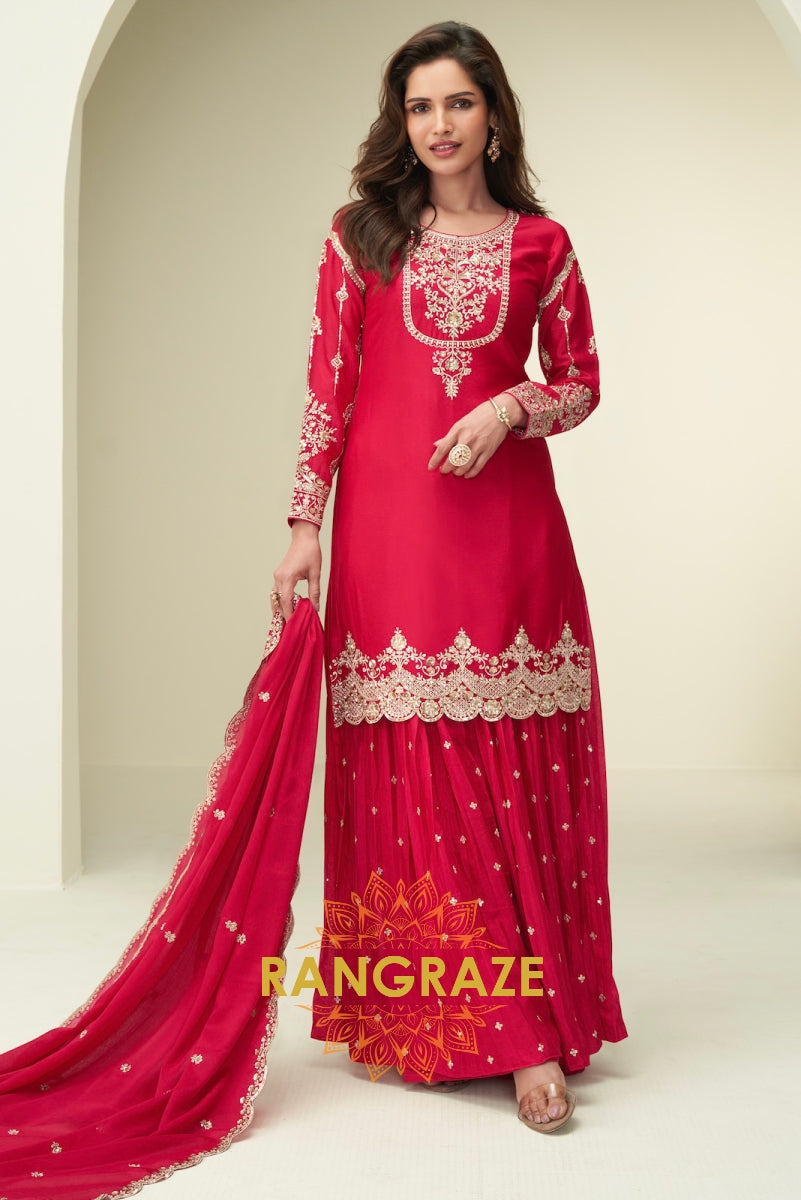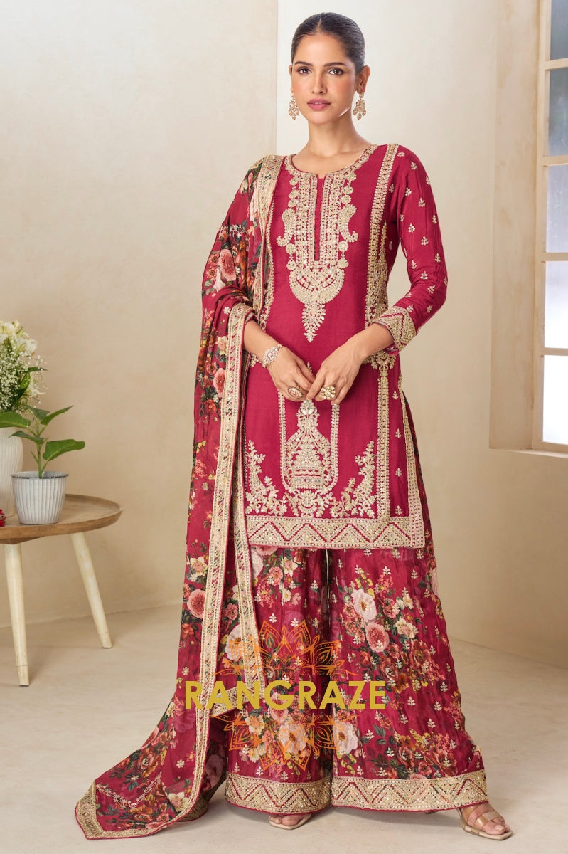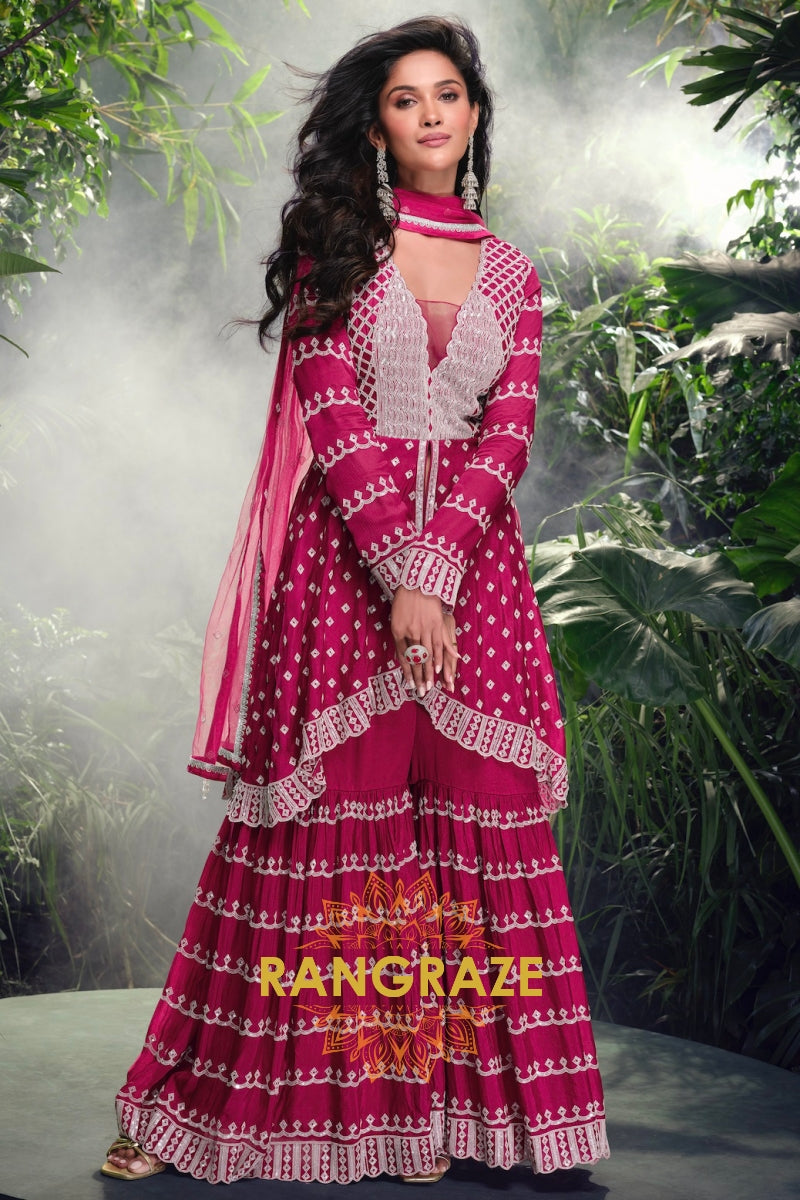 Regal Magenta Embroidered Sharara Suit