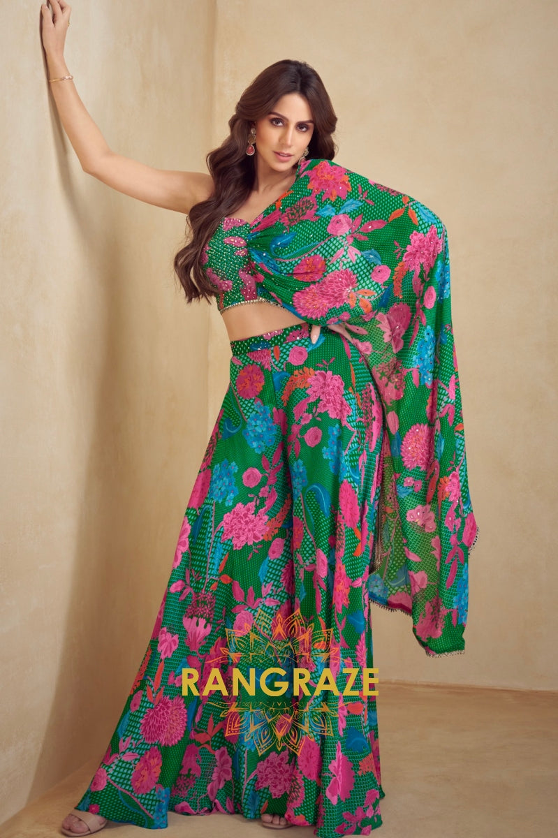 Infuse your wardrobe with vibrant energy in the Tropical Mirage Chinnon Semi Western Wear Co-ord...