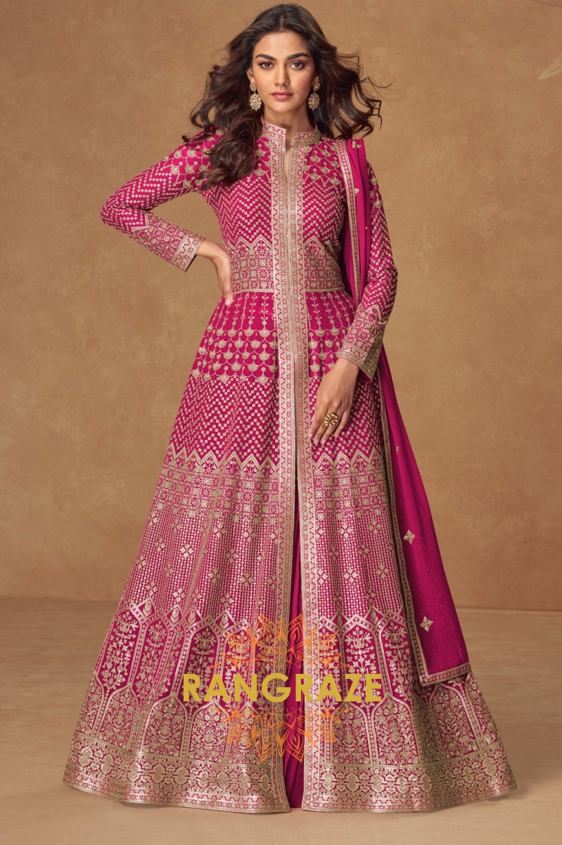 Radiant Rani Pink Embroidered Silk Skirt Suit Set