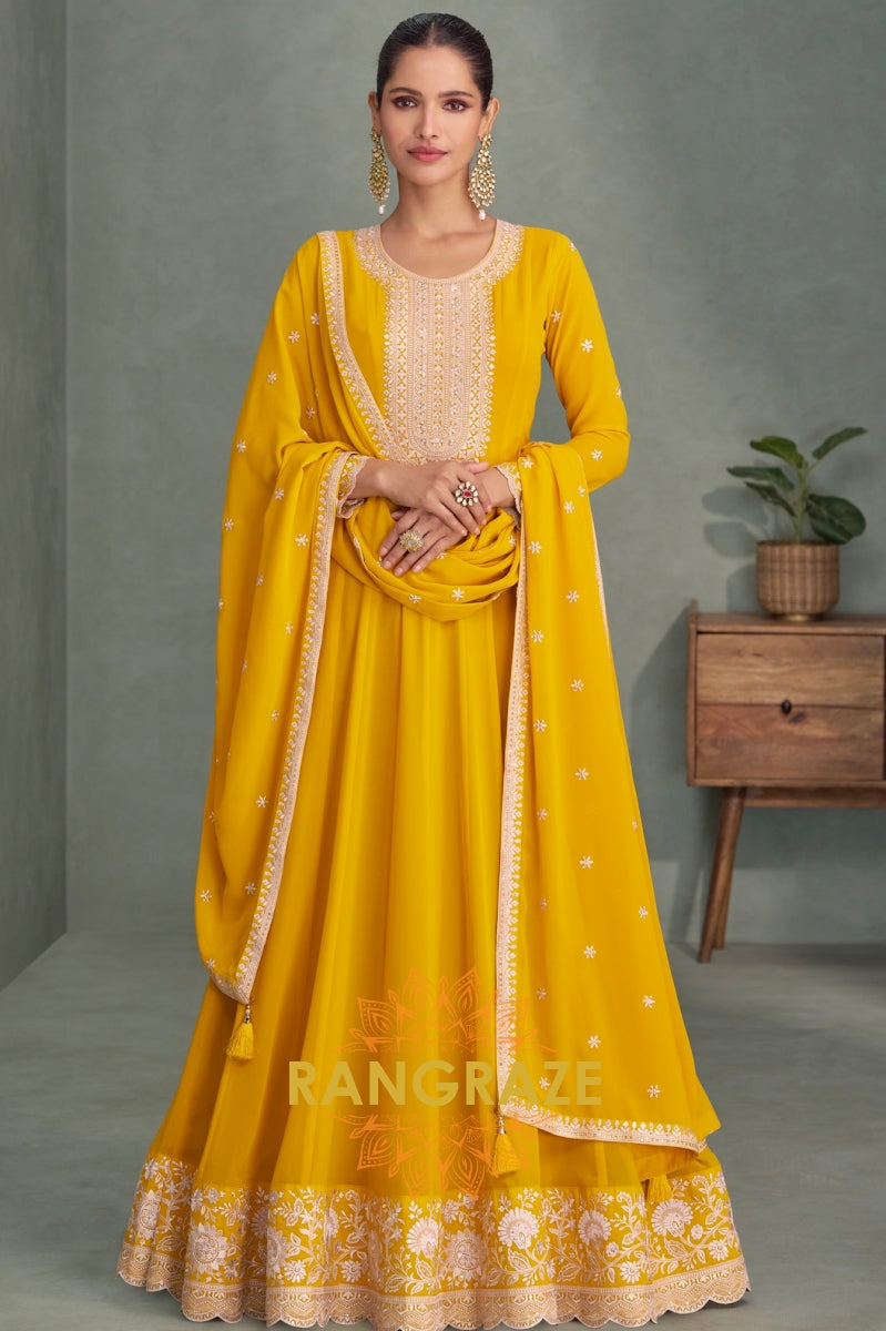 Marigold Charm Georgette Anarkali Suit Set