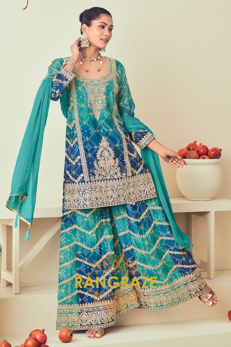 Vibrant Peacock Teal Sharara Suit Set