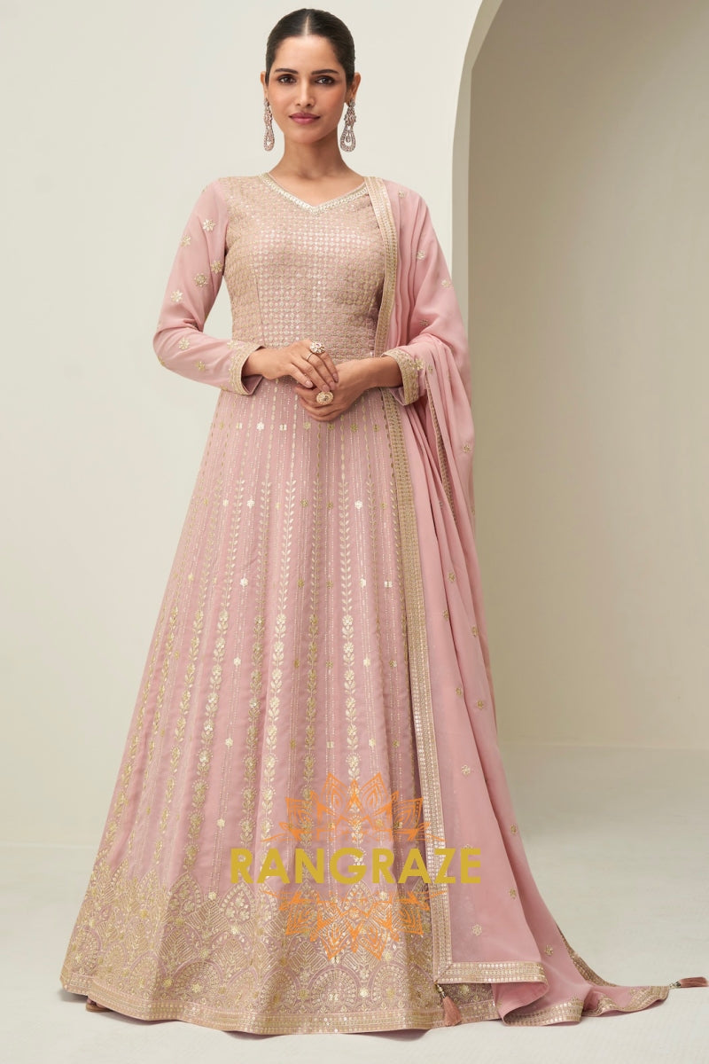 Blush Pink Sequined Georgette Anarkali Gown Suit Set