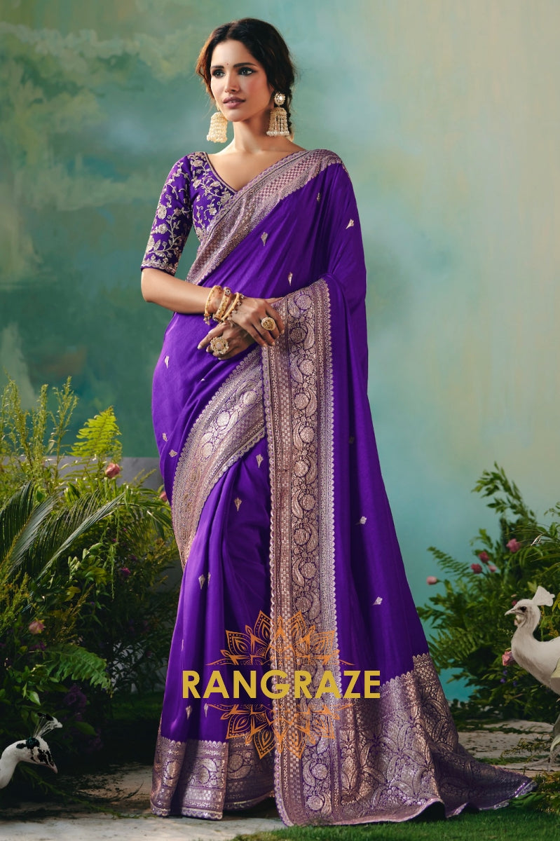 Royal Amethyst Silk Saree with Zari Weaving & Sequin Embroidery Border