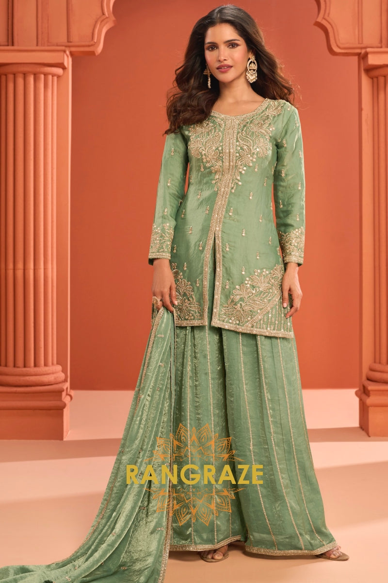 Pastel Green Premium Chinon Designer Suit Set