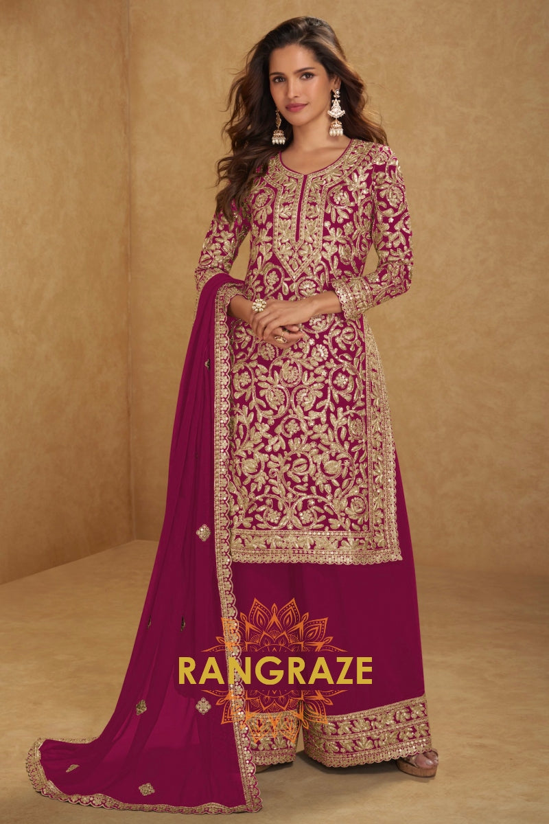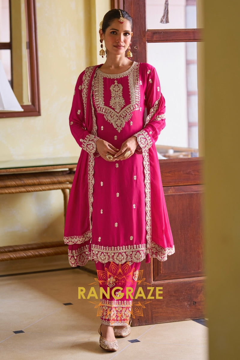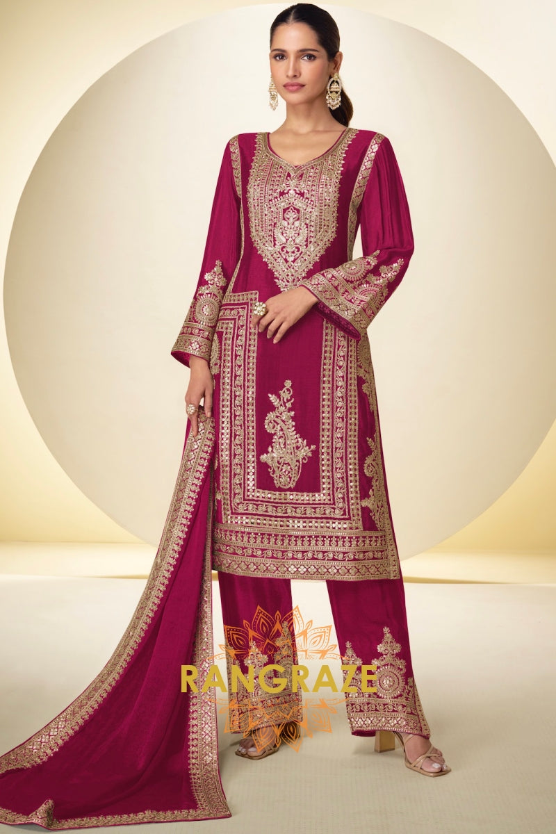 Magenta Premium Chinon Designer Suit Set
