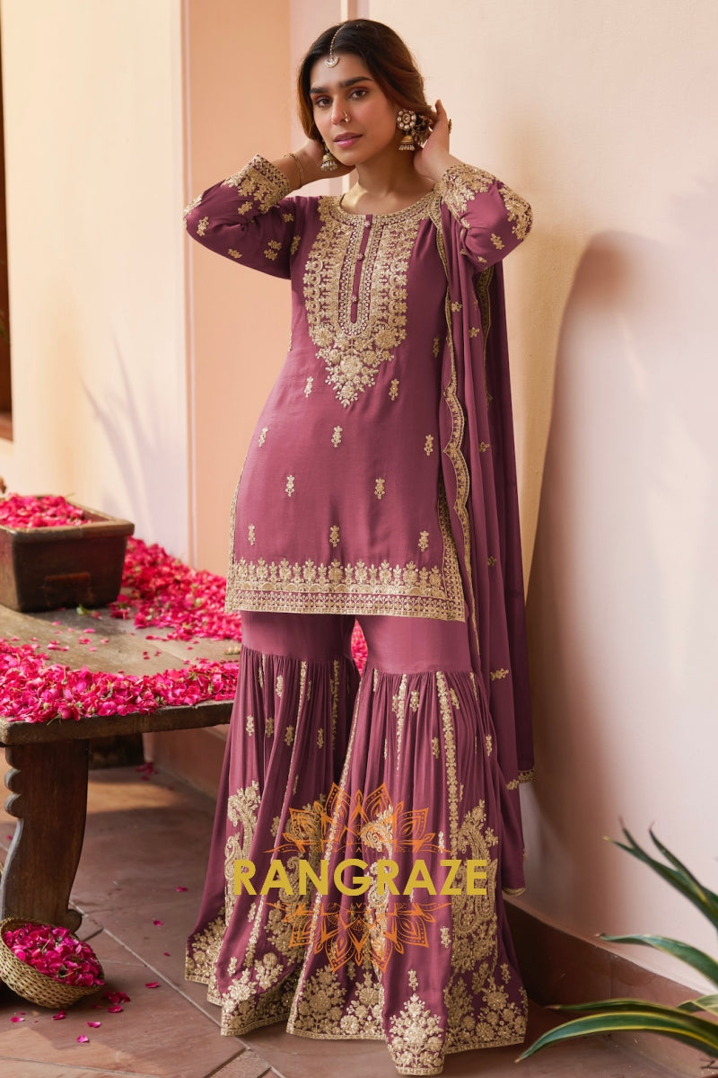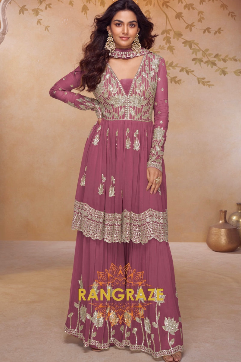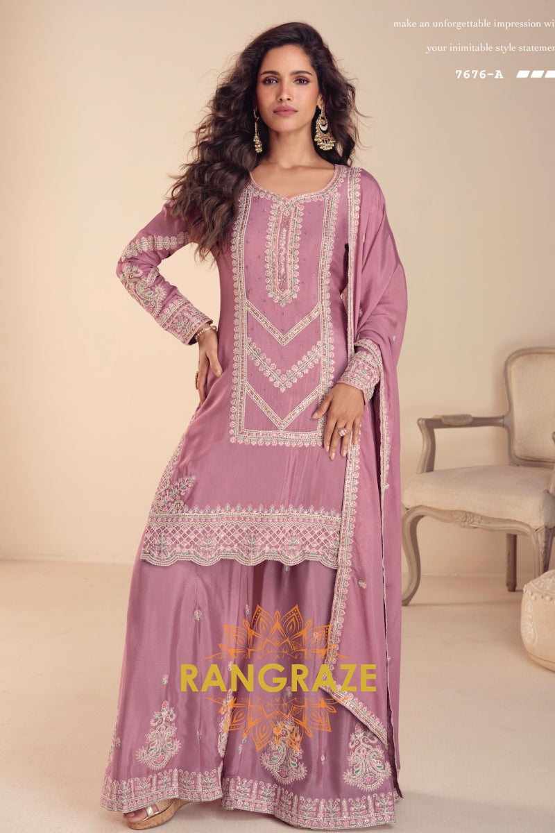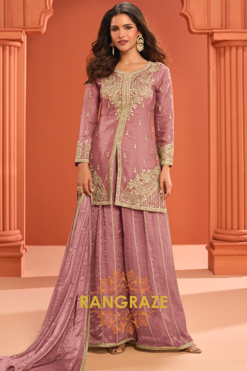 Dusty Rose Premium Chinon Designer Suit Set
