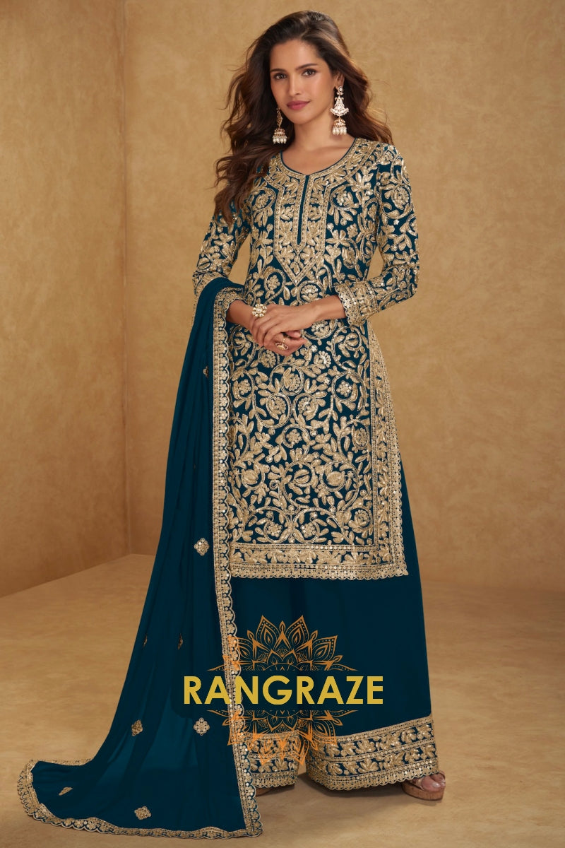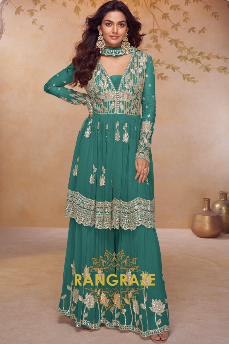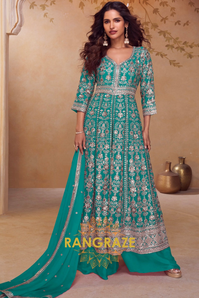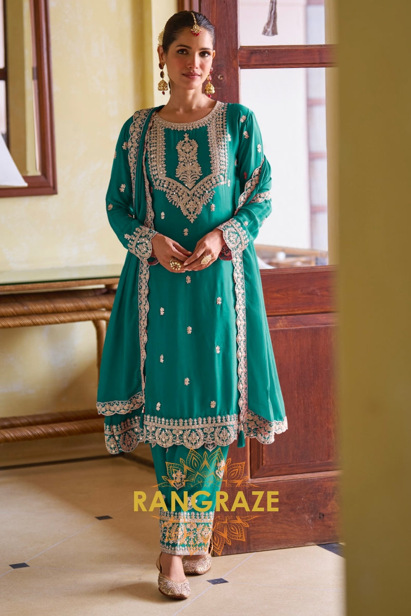 Teal Premium Chinon Designer Suit Set