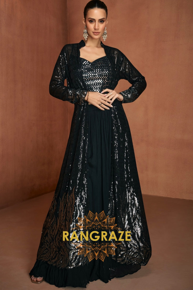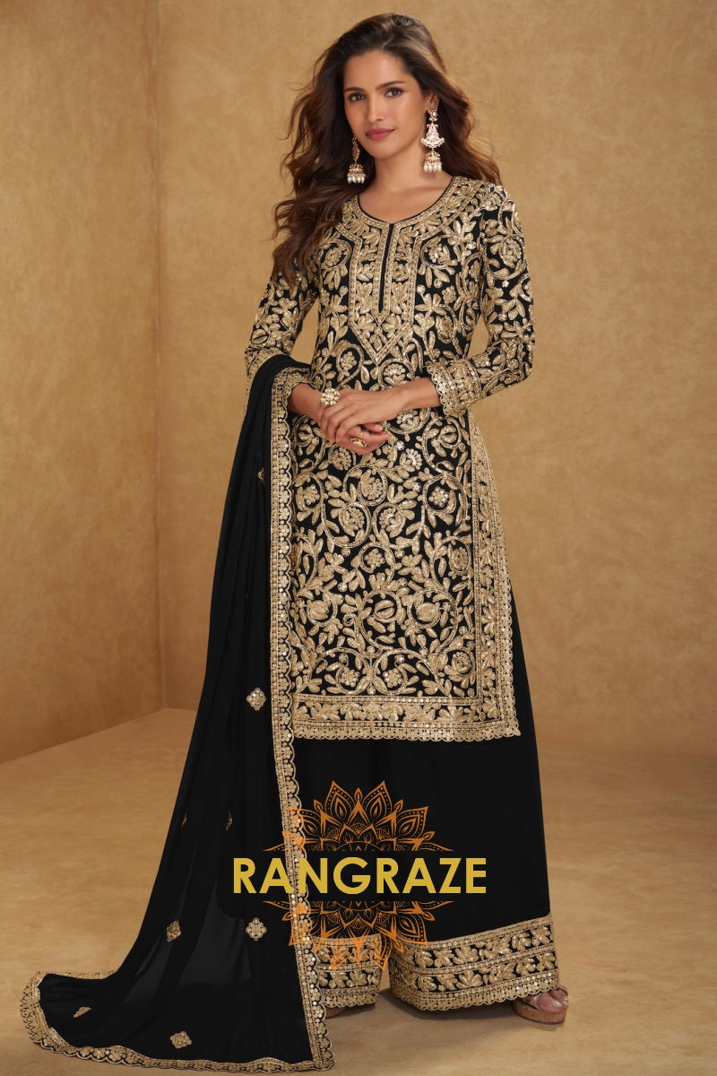 Black Premium Georgette Designer Suit Set