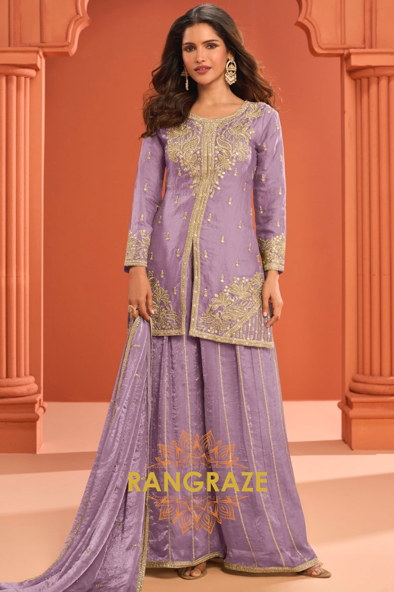 Lilac Silk Designer Embroidered Suit Set