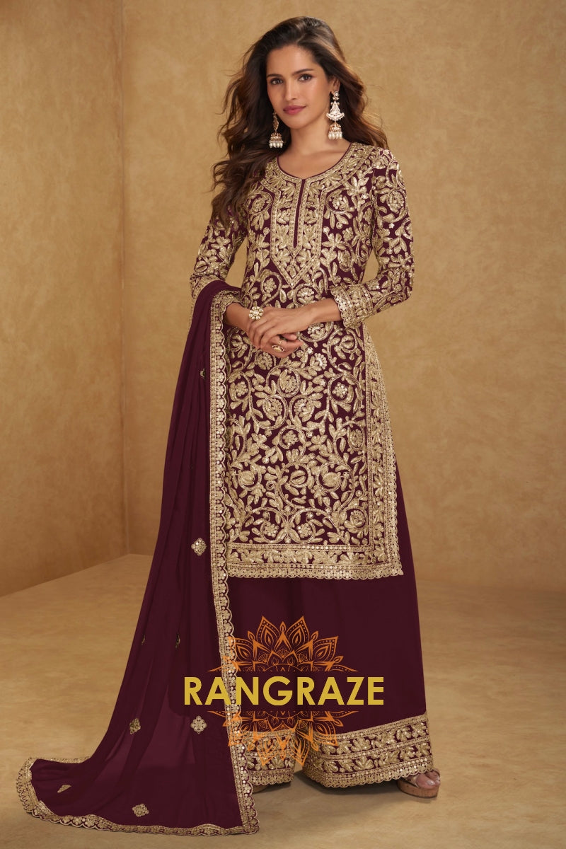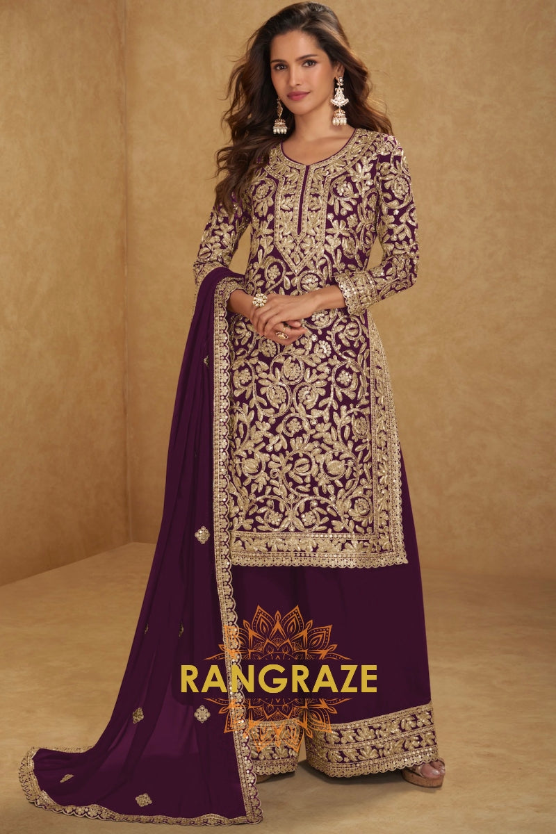 Plum Premium Chinon Designer Suit Set