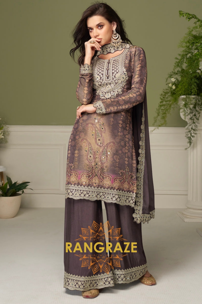 Taupe Premium Chinon Designer Suit Set