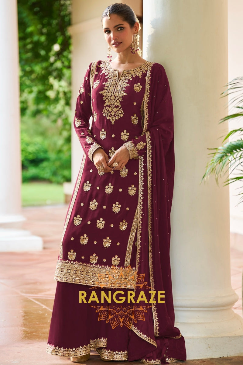 Maroon Premium Chinon Designer Suit Set