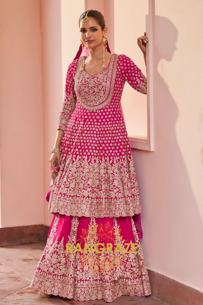 Fuchsia Premium Georgette Designer Anarkali Lehenga Suit Set