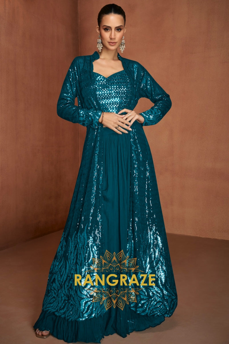 Teal Premium Georgette Designer Suit Set