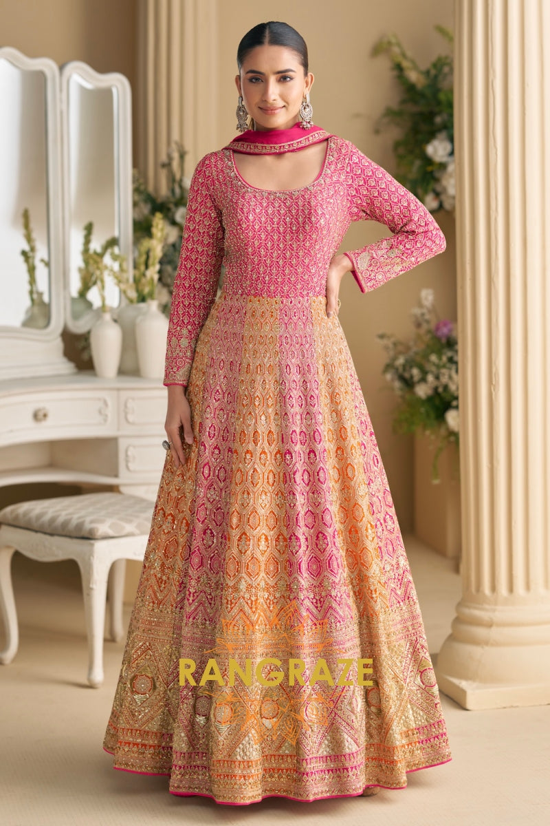 Peach Pink Premium Georgette Designer Anarkali Suit Set