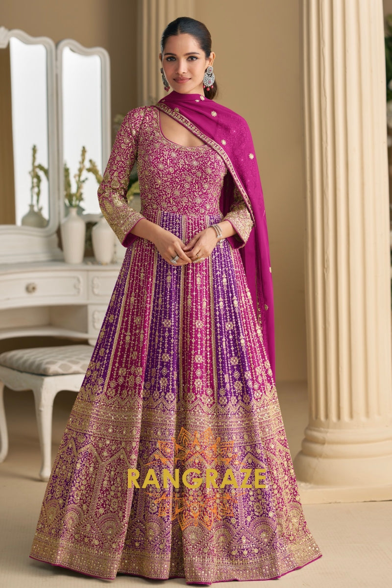 Purple Pink Premium Georgette Designer Anarkali Suit Set