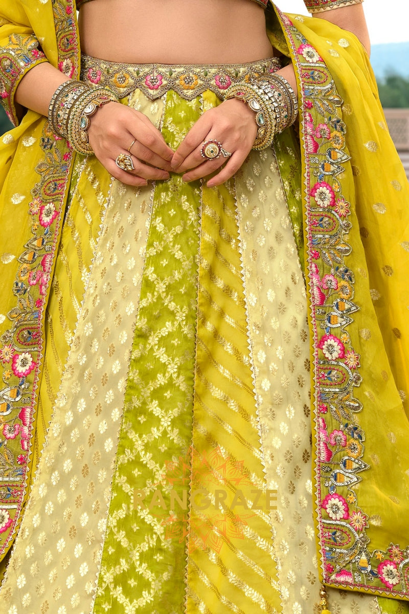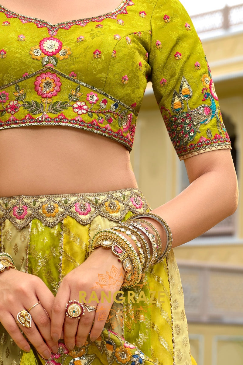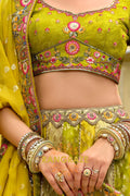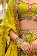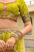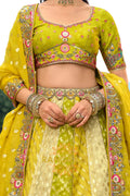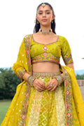 Step into vibrant elegance with this Chartreuse Garden Embroidered Bridal Lehenga, a refreshing ensemble that blends lively hues with intricate traditional craftsmanship, perfect for brides who desire a unique yet timeless bridal look.