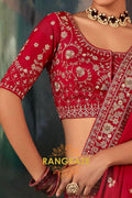 Drape yourself in timeless grandeur with this Crimson Red Designer Embroidered Saree, a statement ensemble that embodies regal elegance and meticulous craftsmanship, perfect for weddings, receptions, and high-profile celebrations.