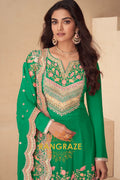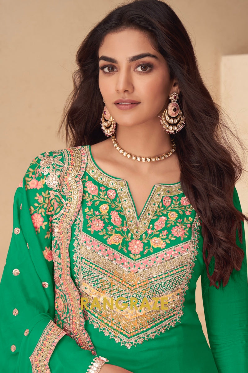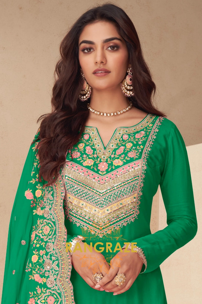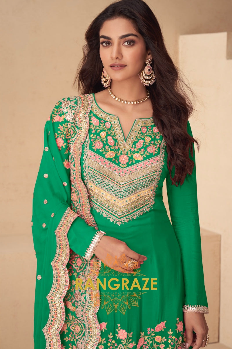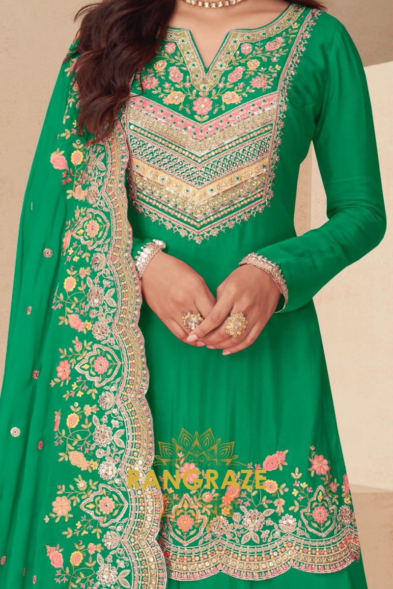Emerald Bloom Real Chinon Designer Sharara Suit Set