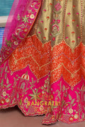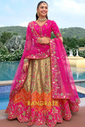 This lehenga is a celebration of bold color, heritage artistry, and bridal opulence, making it an exceptional choice for bridal wear, wedding ceremonies, receptions, and grand festive occasions.