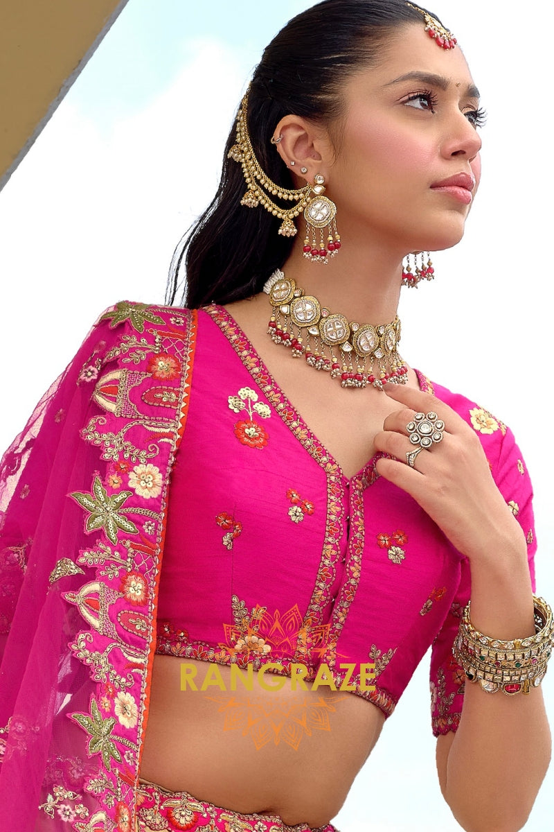 Step into royal radiance with this Fuchsia Royal Heritage Embroidered Bridal Lehenga, a striking ensemble that blends bold jewel tones with intricate craftsmanship, perfect for brides who want to make an unforgettable statement.