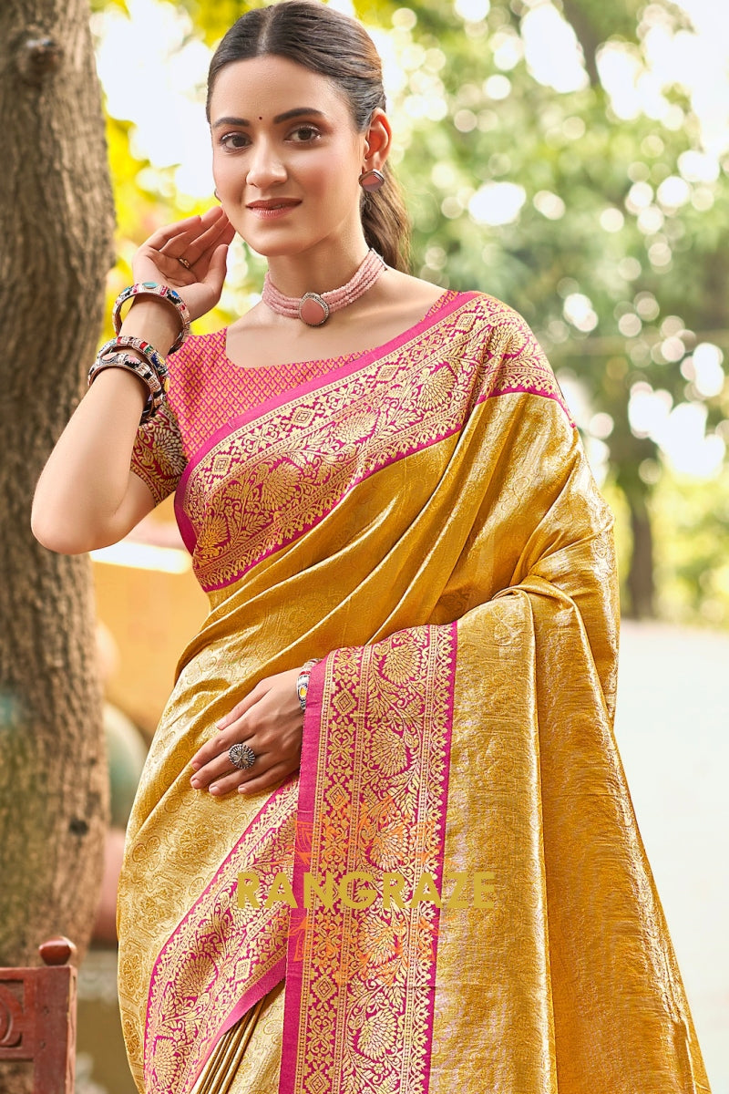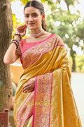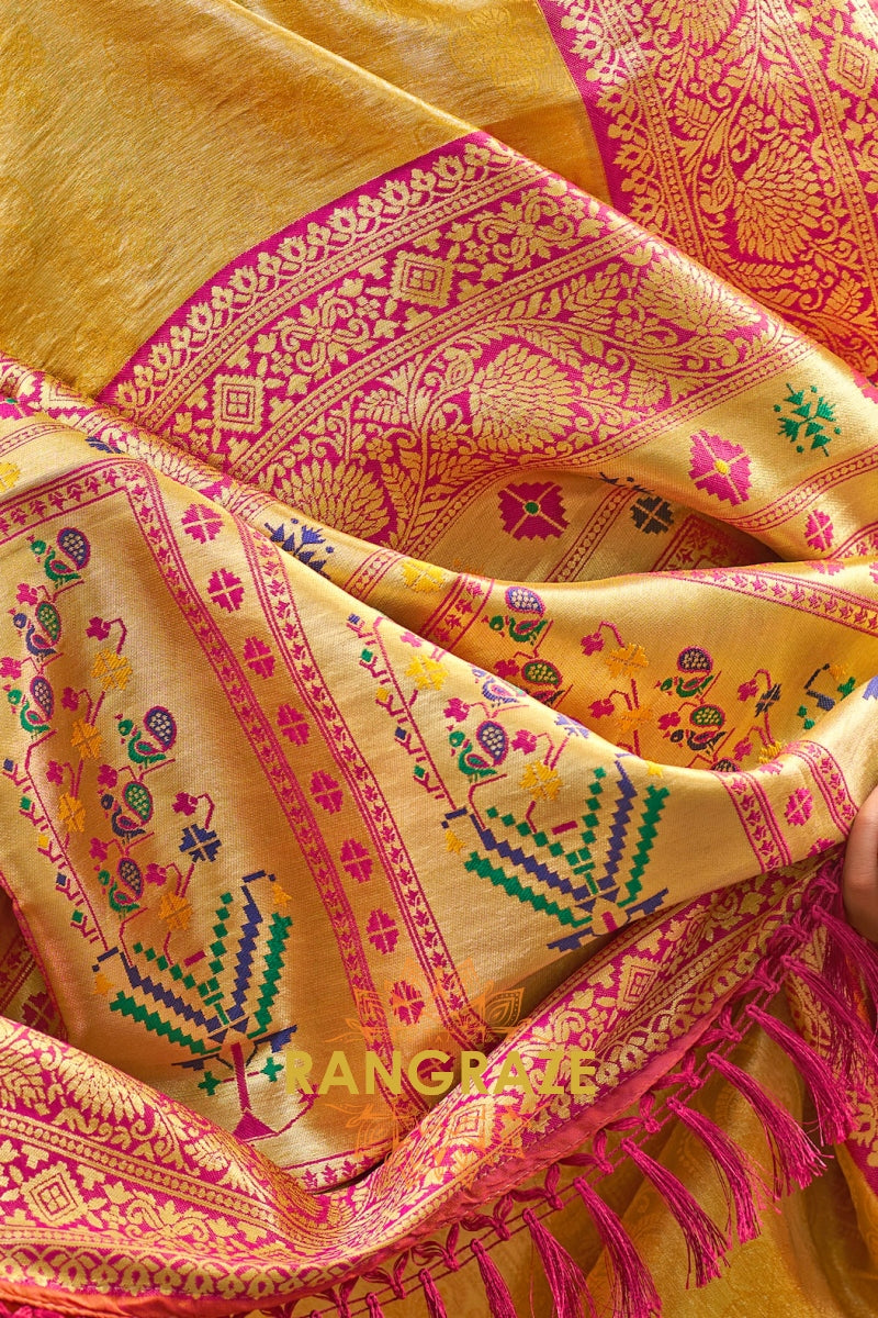 Golden Yellow Kanjivaram Silk Saree with Paithani Pallu