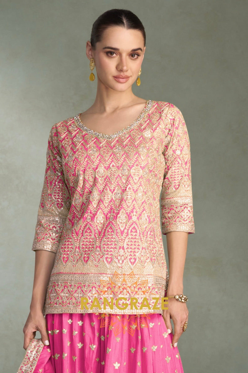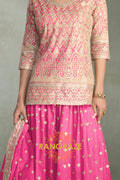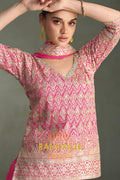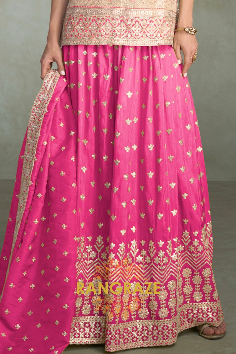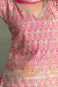 Drape yourself in radiance with this Hot Pink Suit Set, a vibrant ensemble that exudes festive charm and traditional grace. Crafted from premium embroidary and chinon silk, this outfit beautifully merges intricate weaving with contemporary design — perfect for weddings, festivities, or celebratory occasions.