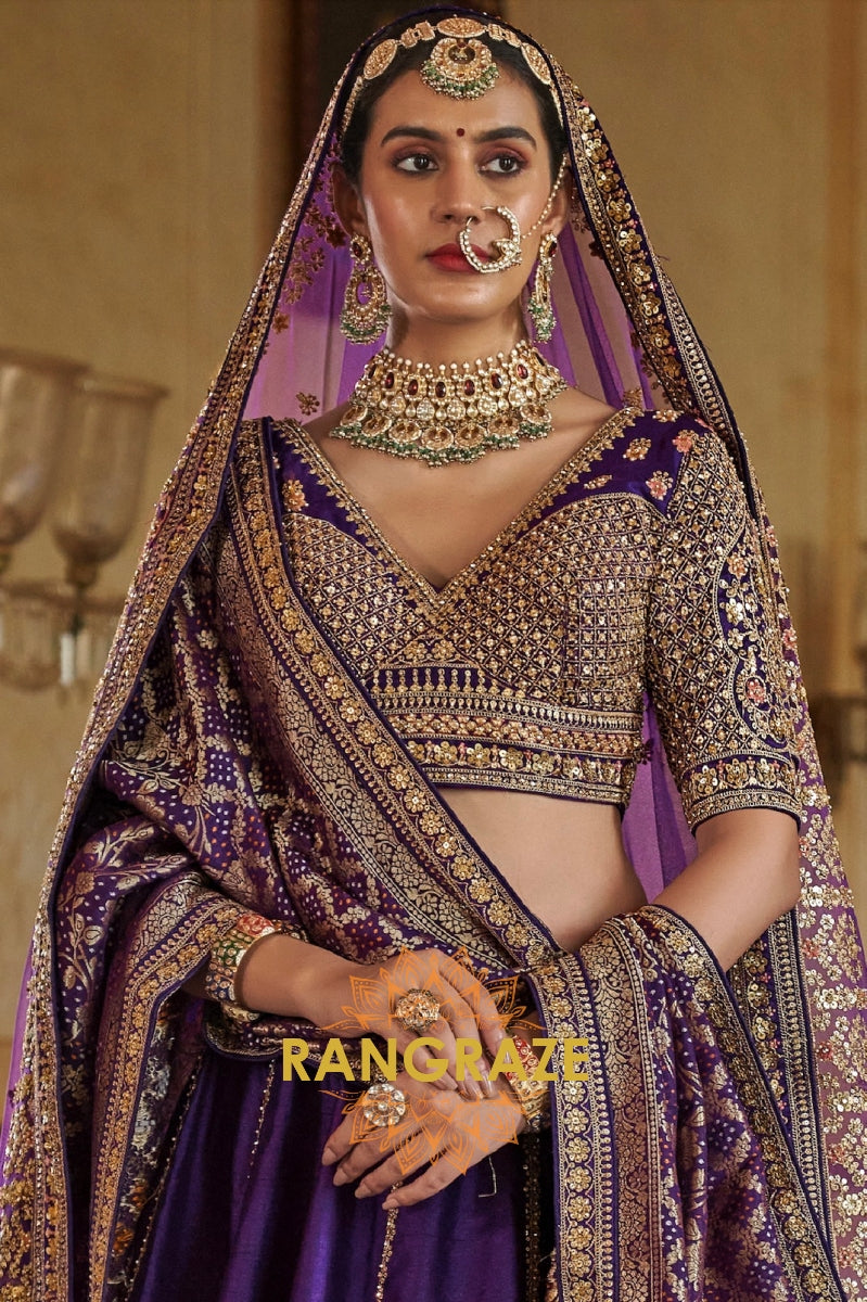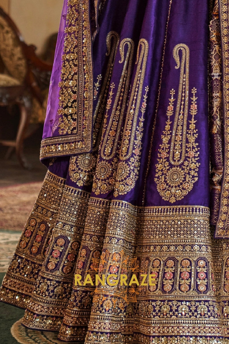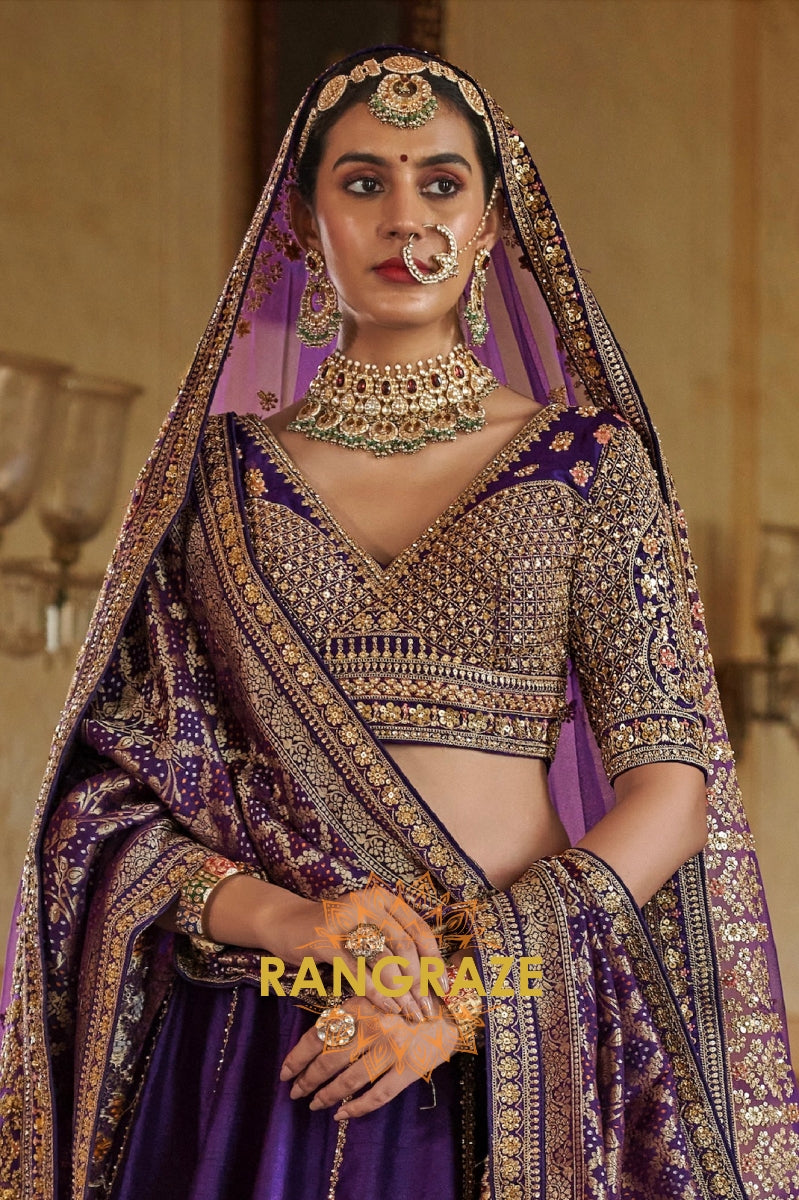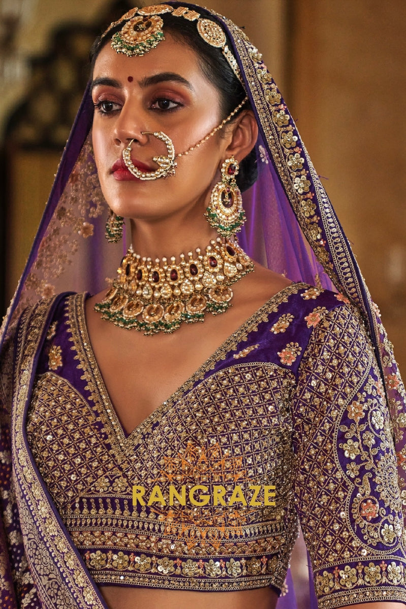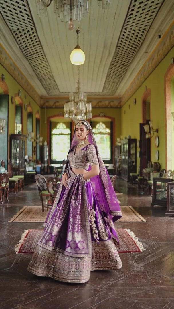 For the bride who dreams of a Sabyasachi-inspired look drenched in royal purple, this lehenga is not just attire—it’s a living heirloom of grace and majesty.