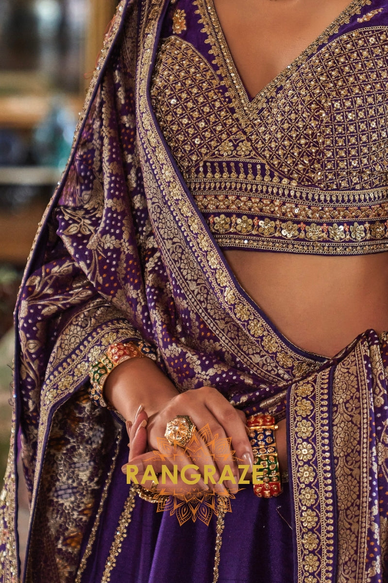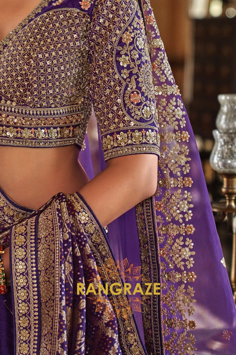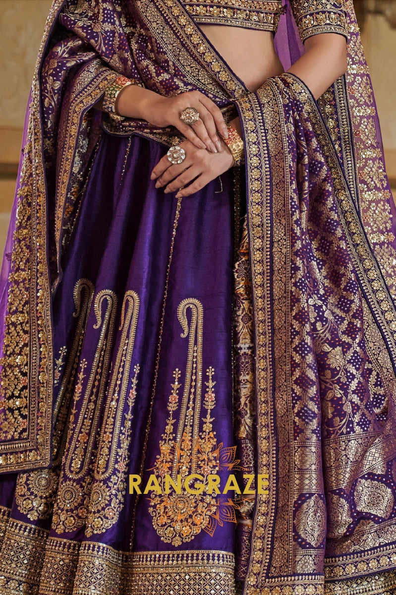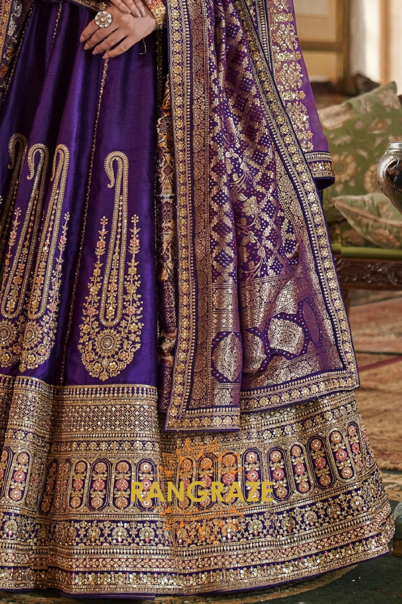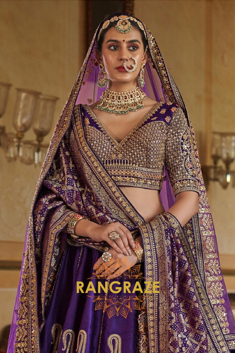 For the bride who dreams of a Sabyasachi-inspired look drenched in royal purple, this lehenga is not just attire—it’s a living heirloom of grace and majesty.