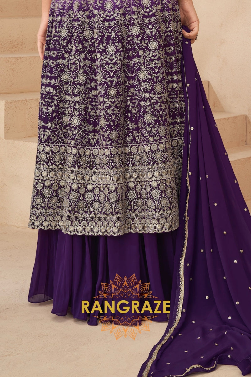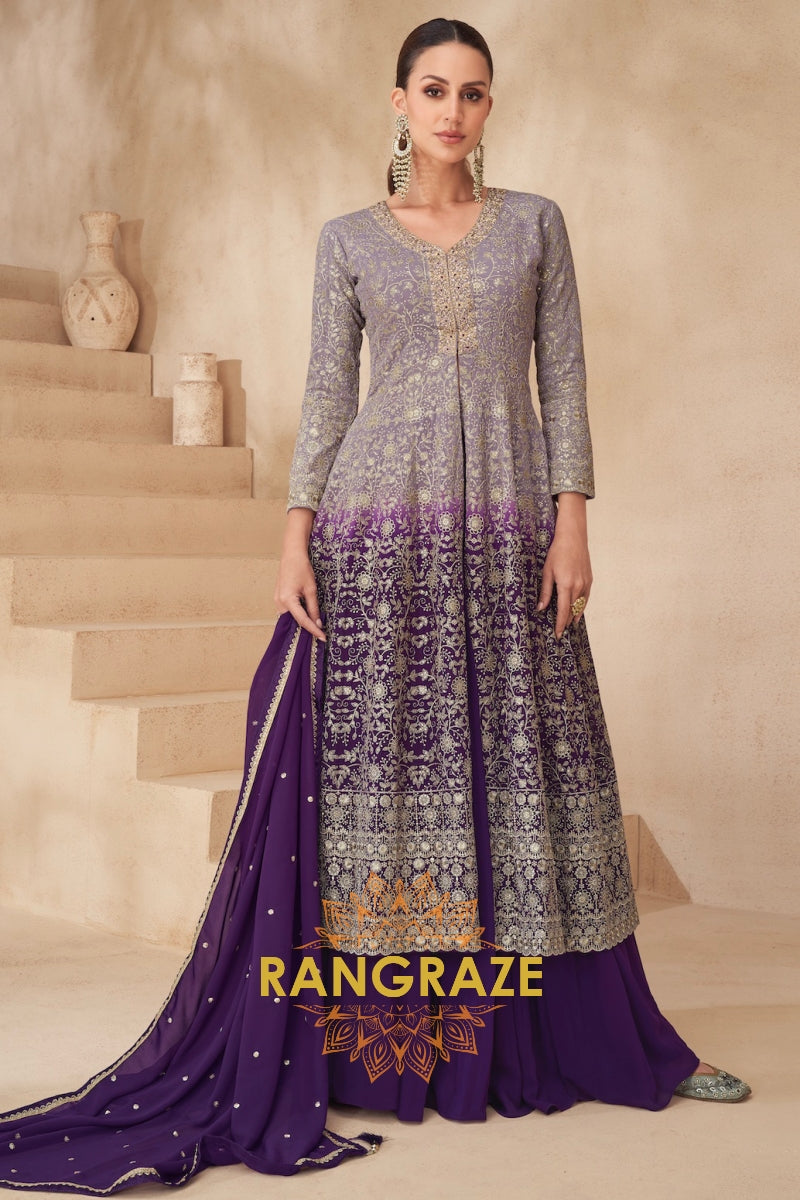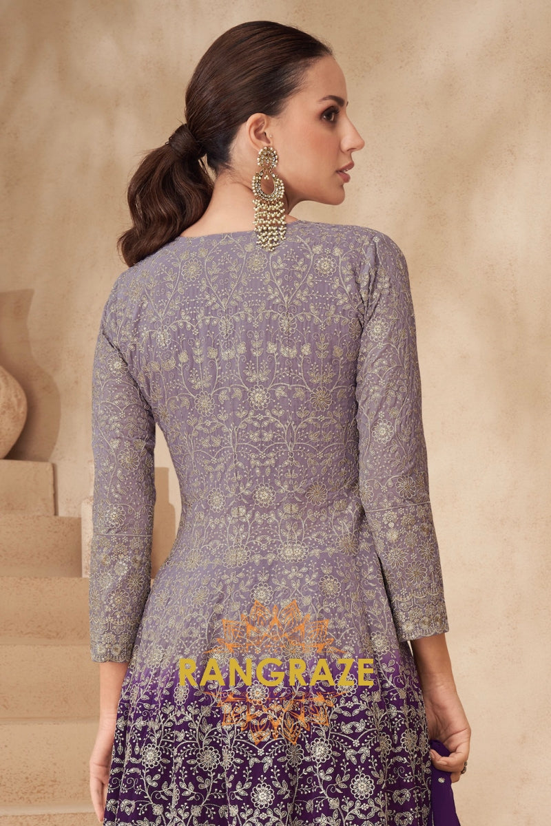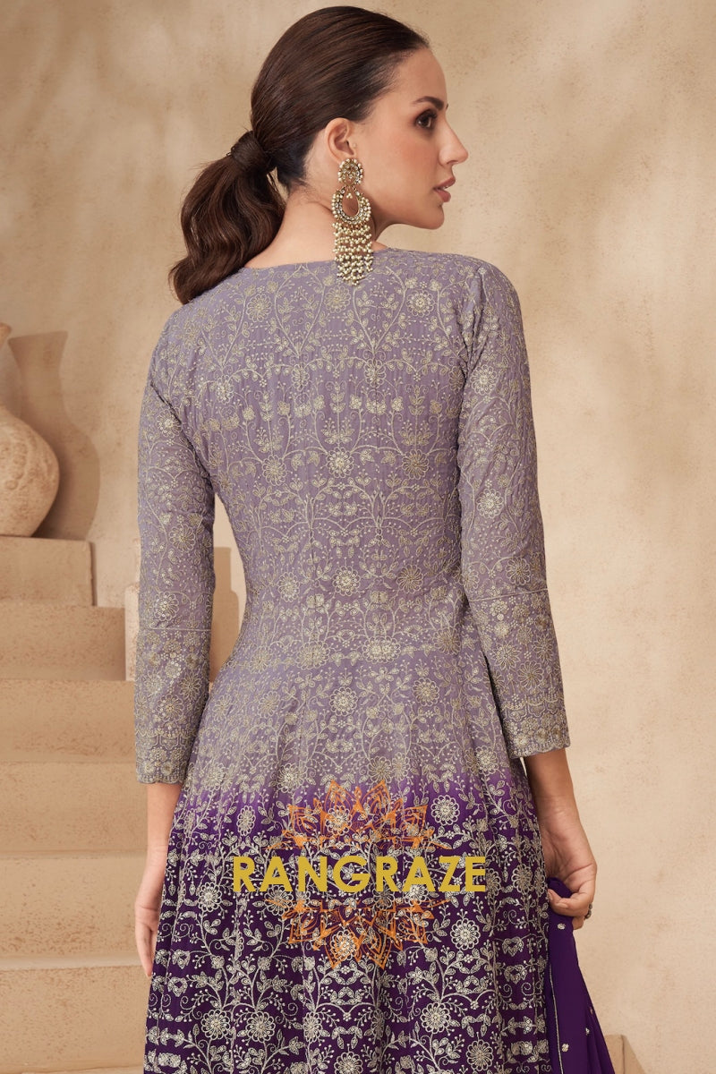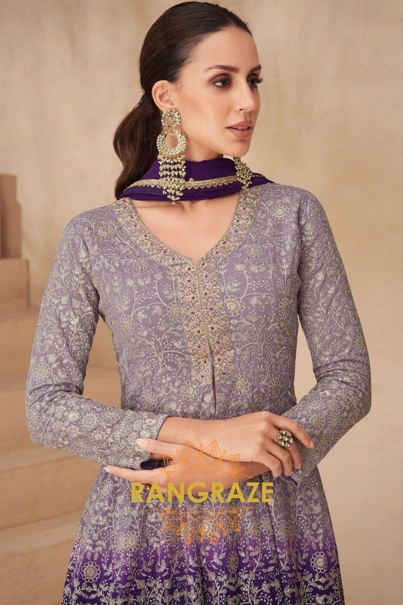 Lavender-Purple Embroidered Georgette Anarkali Lehenga Suit Set