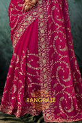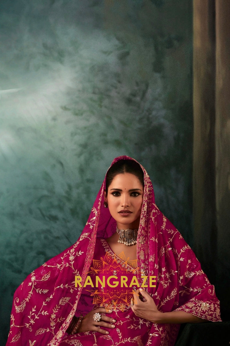 Drape yourself in timeless grandeur with this Magenta Designer Embroidered Saree, a statement ensemble that embodies regal elegance and meticulous craftsmanship, perfect for weddings, receptions, and high-profile celebrations.