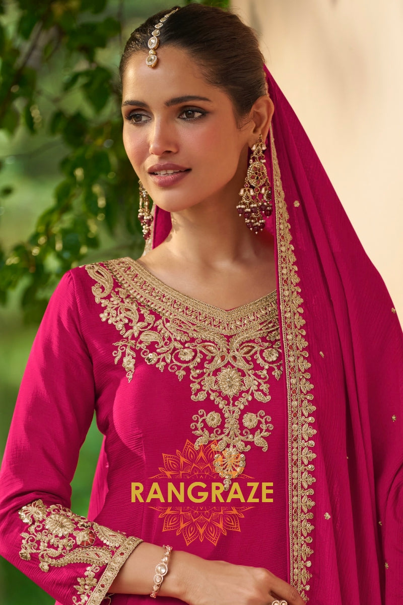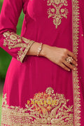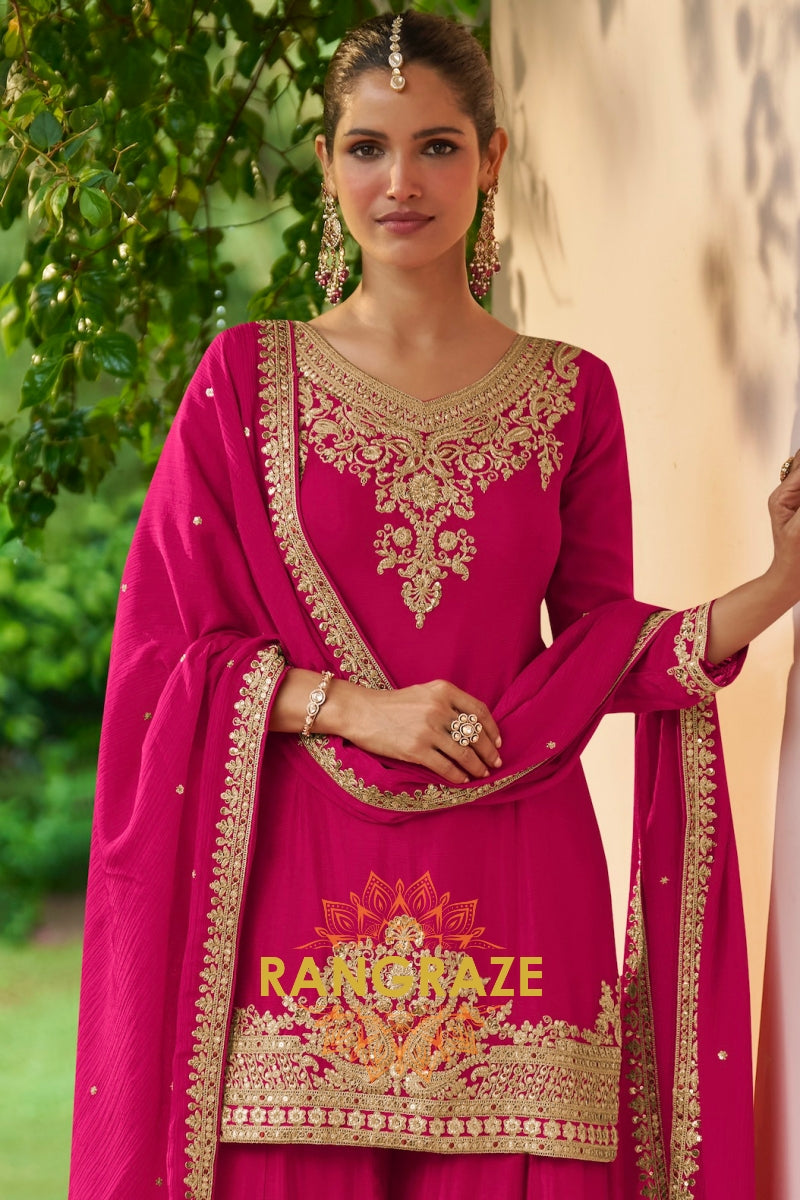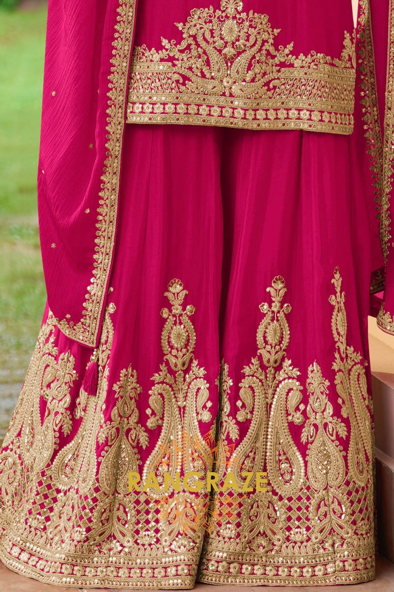 Magenta & Gold Embroidered Premium chinon Sharara Suit Set