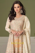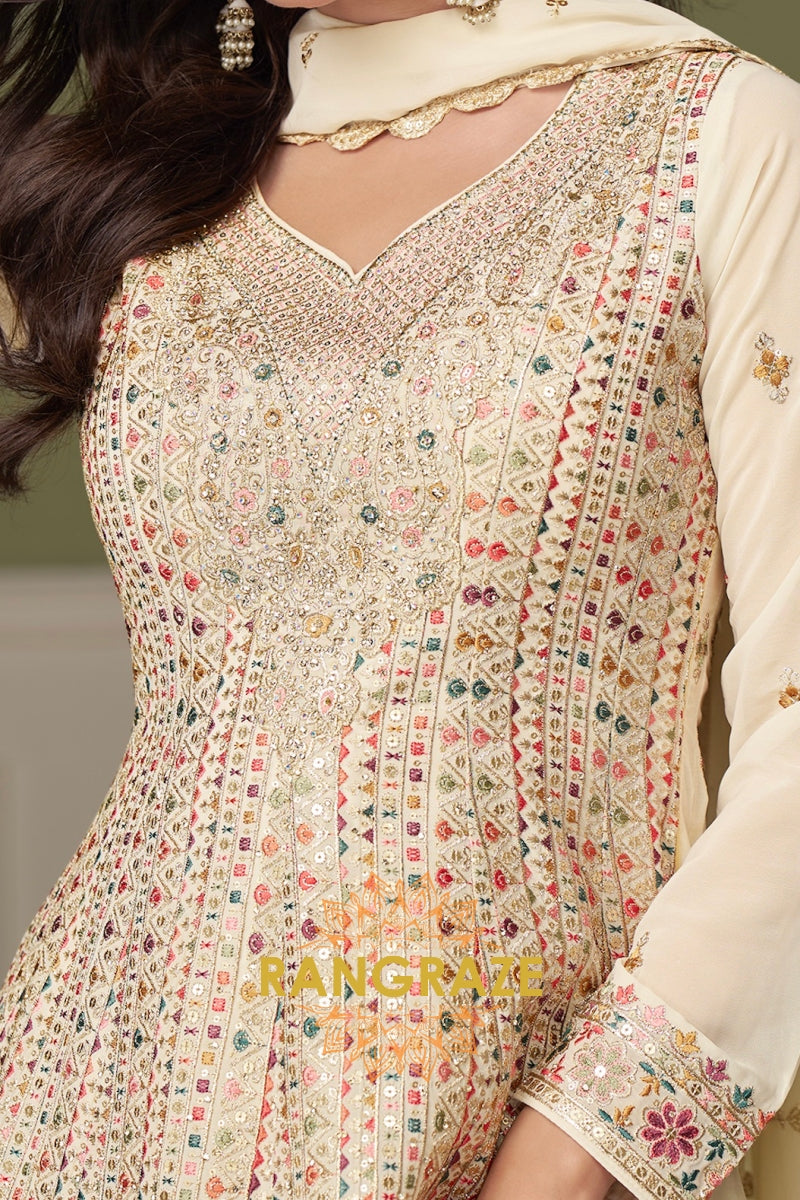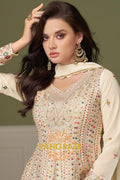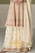 Soft elegance meets intricate craftsmanship in the RangRaze Ivory Pure Georgette Hand Embroidered Sharara Suit Set. Designed for refined celebrations, this ensemble embodies timeless grace with a modern festive appeal.