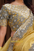 Work: Intricate Thread, Sequins & Zari Embroidered Border and Designer Blouse