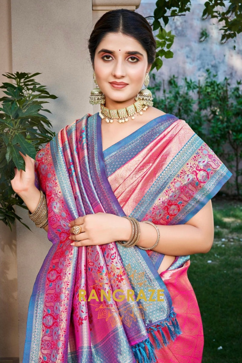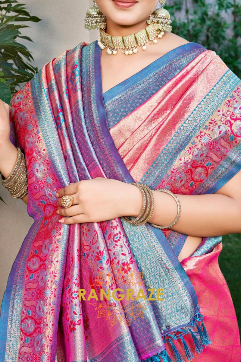 Pink Kanjivaram Silk Saree with Heavy Zari Work