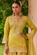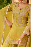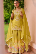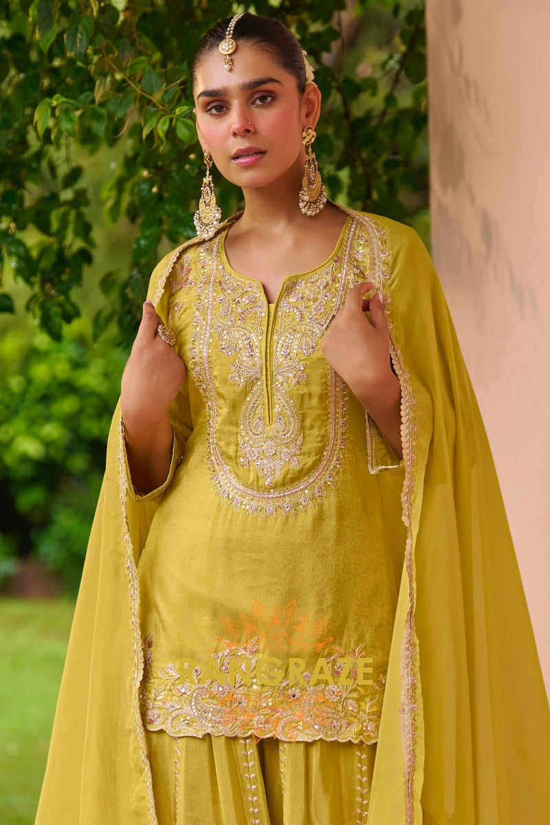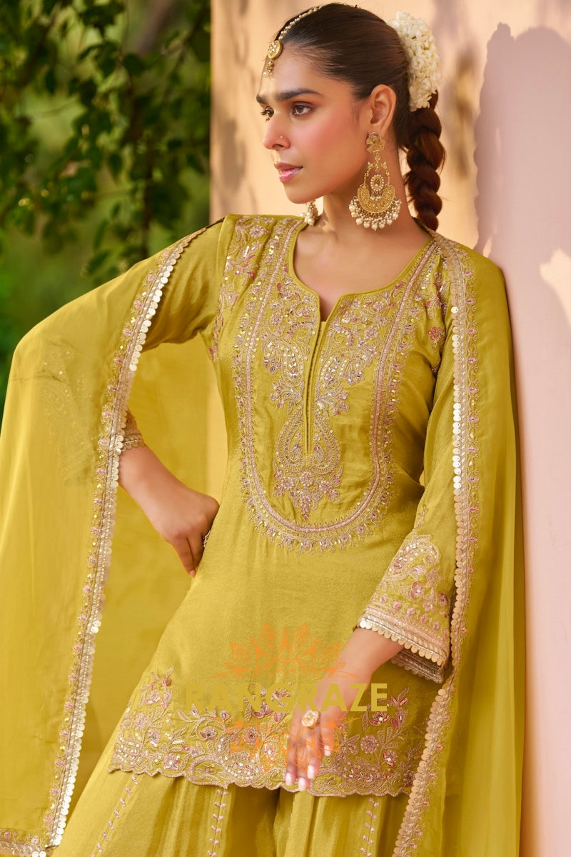 Pistachio Green Embroidered Premium chinon Sharara Suit Set
