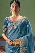 Color: Powder Blue Saree with Matching Blouse