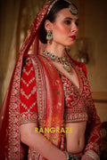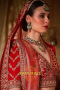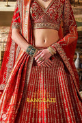 Step into timeless grandeur with the Rajwada Scarlet Bridal Silk Lehenga, an heirloom-inspired masterpiece crafted for the bride who dreams of making a regal statement. Evoking the artistry of Sabyasachi’s couture legacy, this ensemble fuses royal craftsmanship with contemporary bridal sophistication.