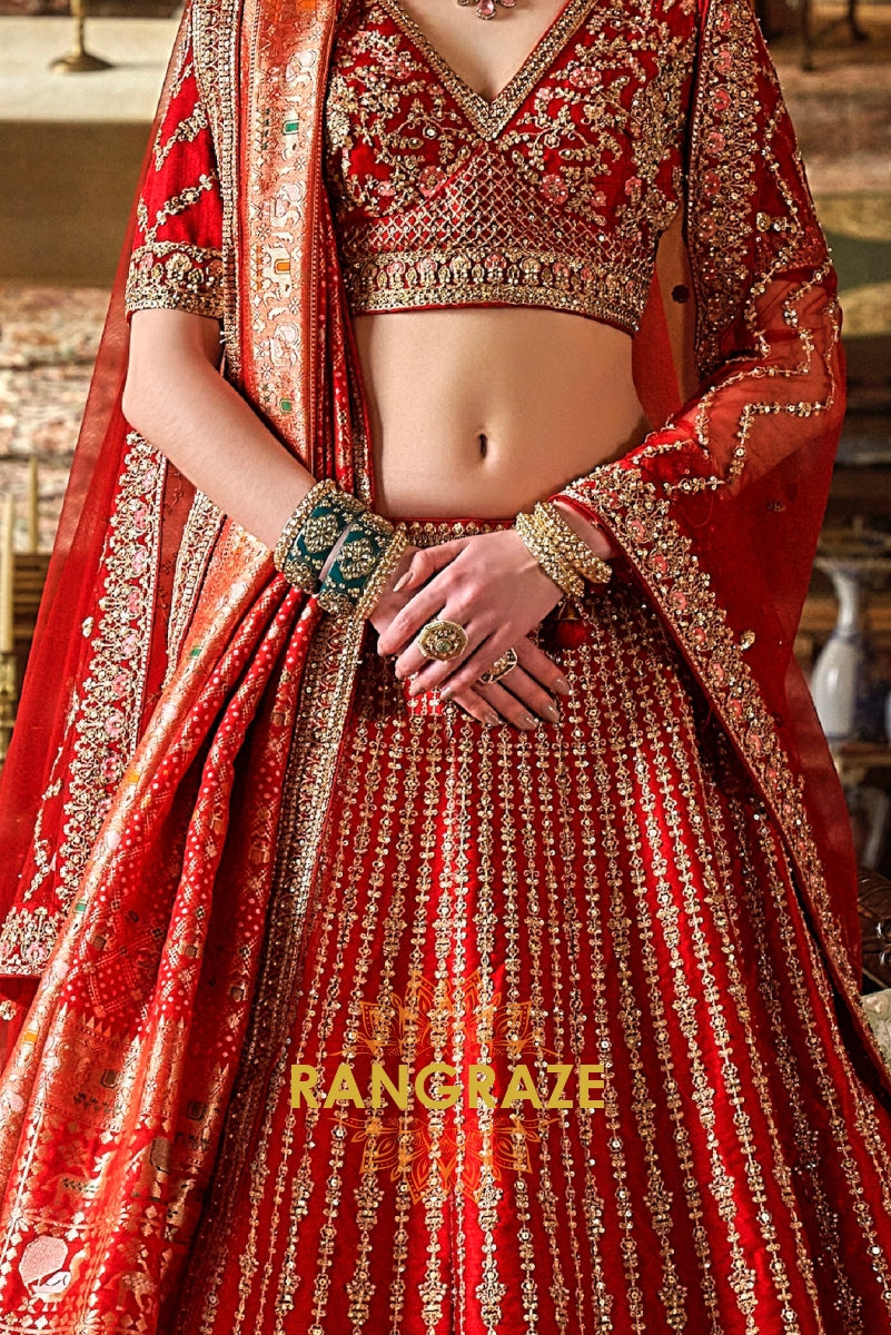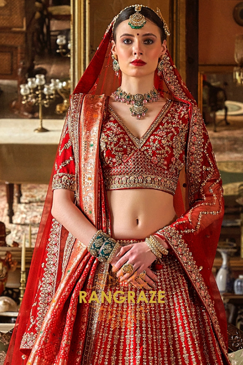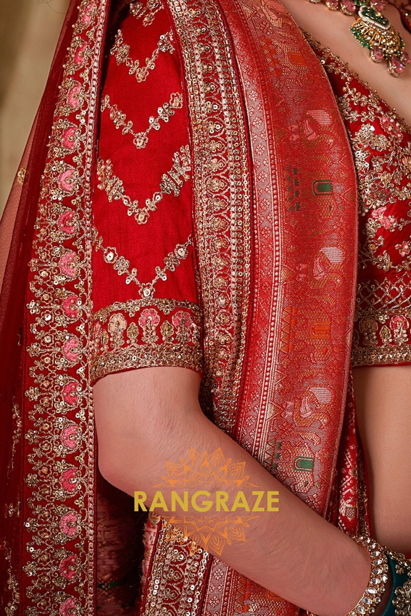 For the bride who desires a classic red lehenga with modern couture detailing, this ensemble is not just attire—it’s a legacy of elegance and tradition.